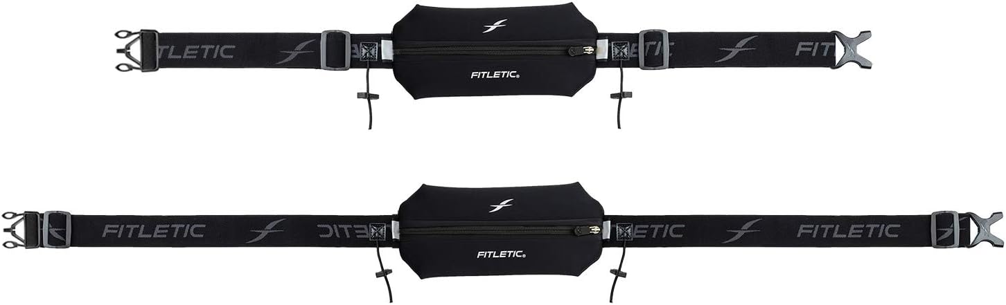 Fitletic Neo Race Belt, Black | Unique No Bounce Design for Marathon, Triathlon, Trail, 5k, 10k | Running Belt | N01R-01