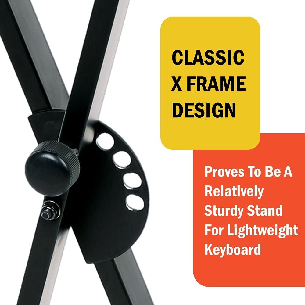 - Safe & Reliable - The classic X frame design features a secure bolted construction for reliability & maximum stability. It also comes with stable cushion feet and keyboard rests. No matter you are novel, amateur, or professional, the stand is your best choice.