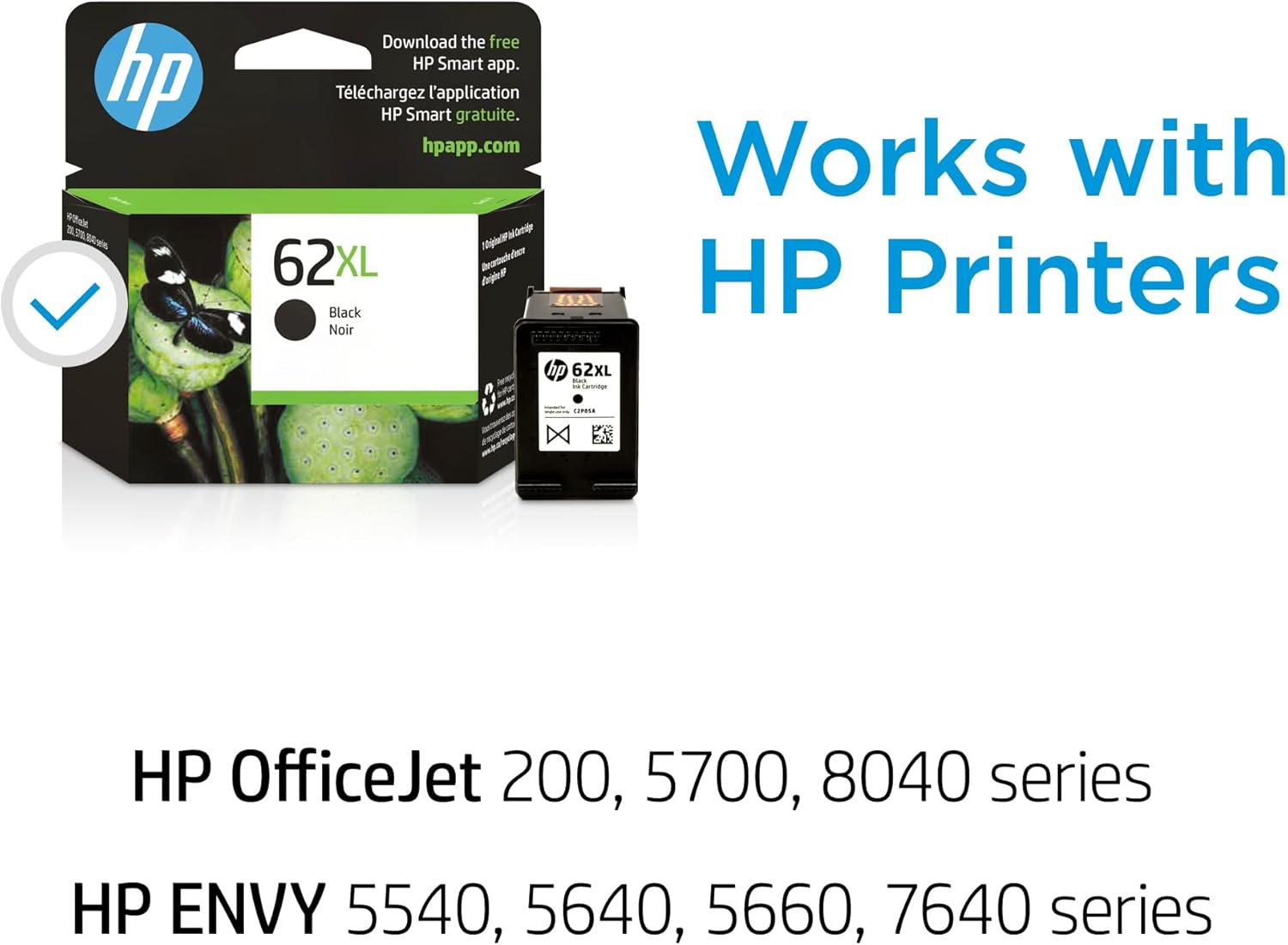 HP 62XL Black High-yield Ink Cartridges for HP Printers | Works with Printer Series: ENVY 5540, 5640, 5660, 7640, OfficeJet 5740, 8040, OfficeJet Mobile 200, 250 | Instant Ink | C2P05AN