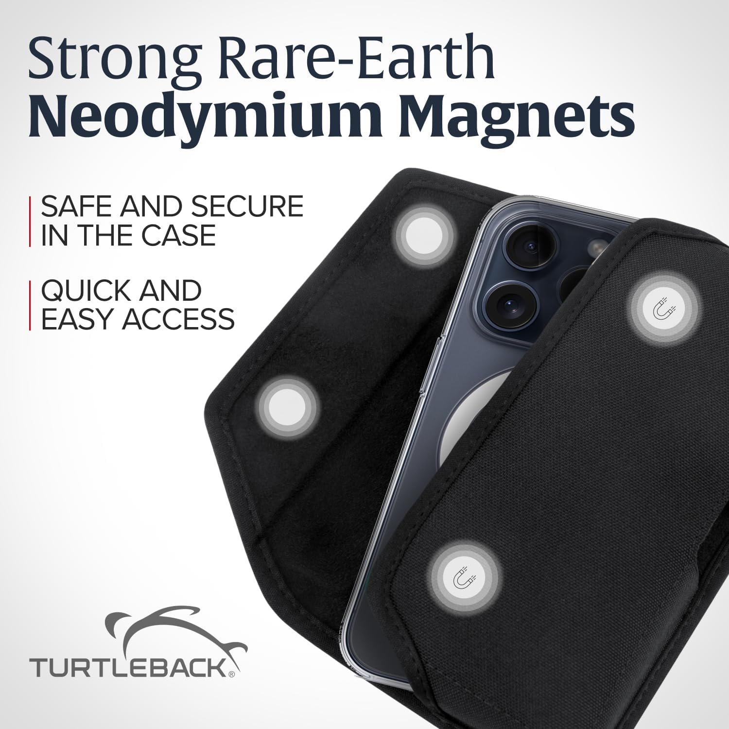 Turtleback Belt Clip for iPhone 16 Pro Max, 15 Pro Max, 14 Pro Max -Small- Fits w/Slim MagSafe Style Cases, Premium Black Nylon, Horizontal Belt Holder, Magnetic Closure HD Rotating Belt Clip