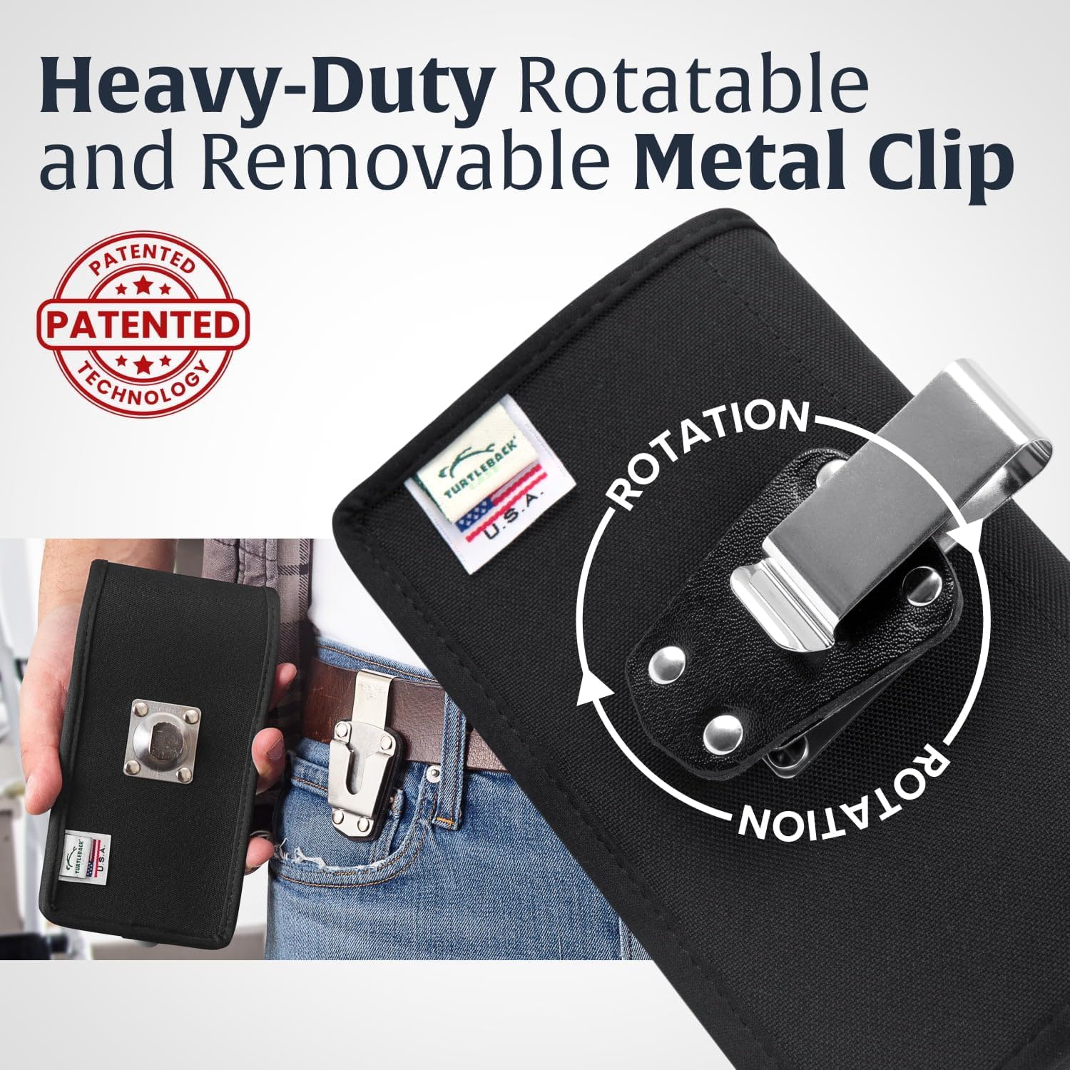 - ππππππππ πππ πππππ ππ πππ πππ: Turtleback phone holster is crafted from high-quality reinforced nylon, laminated with a proprietary durable backing material to provide superior resistance against dirt and water. Built for strength and style, this iPhone belt holder for men combines long-lasting durability with aesthetic appeal and an improved tactile feel. This phone holster fits vertical on your belt and features a secure, rotating ratcheting belt clip for reliable everyday carry. Whether you prefer a rugged nylon holster or a sleek nylon phone case, Turtleback delivers reliability and craftsmanship you can trust. Proudly Designed and Built in the USA since 2001.