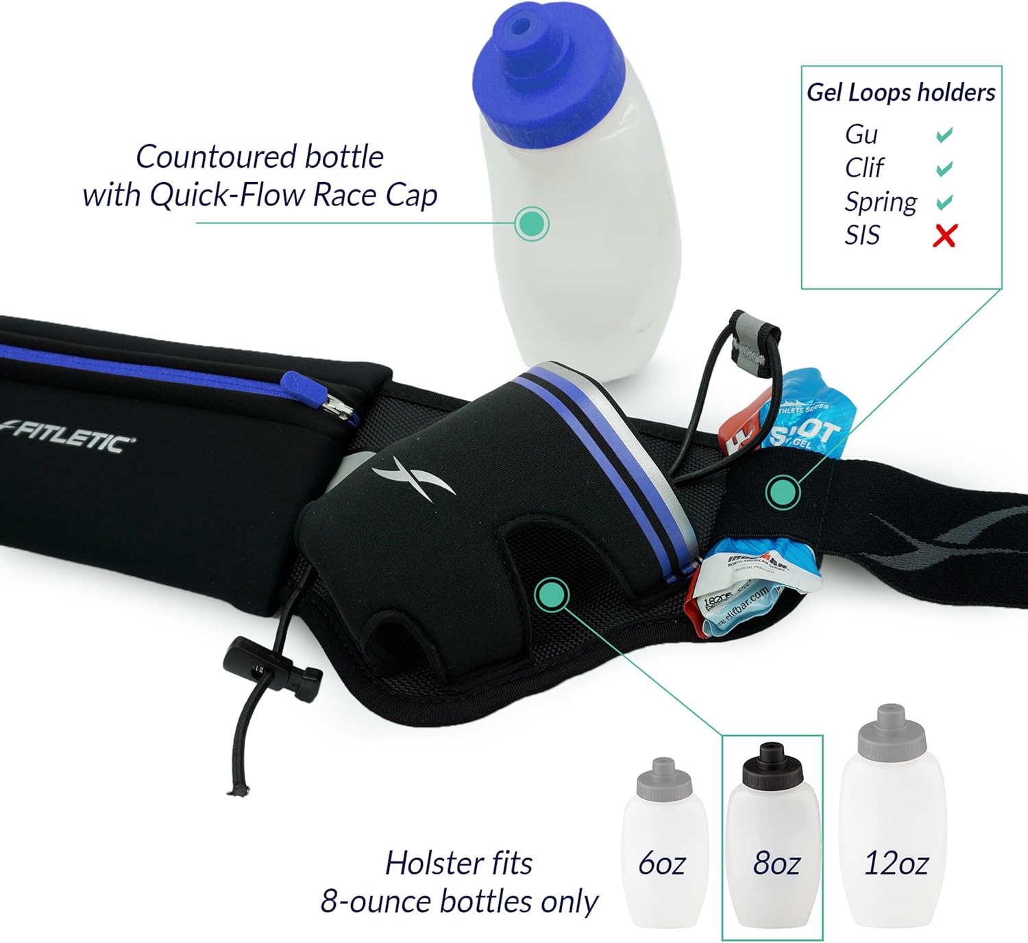 • The 2 included 8 ounce bottles fit into the quick draw hip holsters & prevent any bouncing while running. Quick flow caps to avoid needing to stop your run – Top rack dishwasher safe & BPA Free