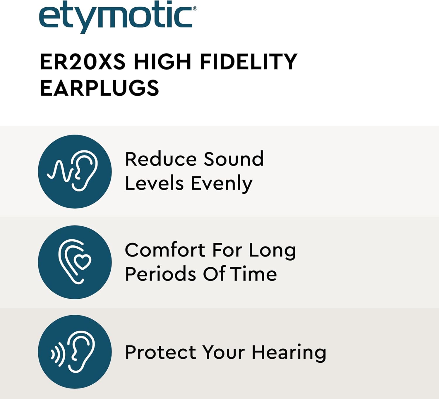 Etymotic ER20XS ETY Earplugs Set - High-Fidelity Hearing Protection - Up to 20 dB Sound Reduction - Reusable - Includes 1 Pair of Large, Standard, and Foam Eartips, Neck Cord & Case