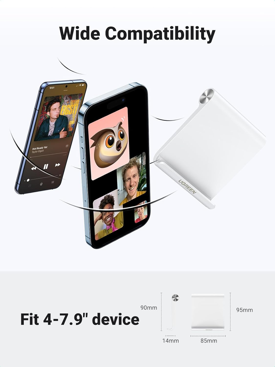 - Collapsible & Portable: UGREEN phone stand has a size of 3.74" by 3.35" and light weighs 2.2 oz, it can be easily folded for storage or air travel