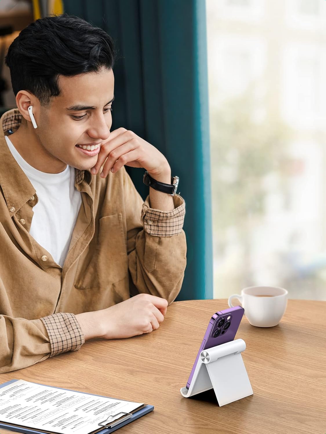 UGREEN Cell Phone Stand for Desk Phone Holder Foldable Portable Adjustable Compatible with iPhone 16 15 14 13 Pro Max, iPhone 12 11 Plus SE XS XR 8 7, Office Desk Travel Accessories, White