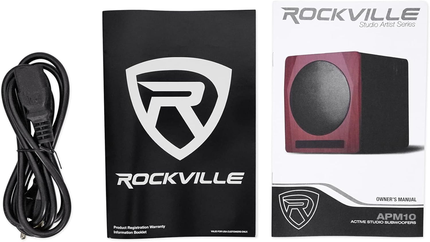 Rockville APM10B Active Studio Subwoofer in Black, 10"", 400W, MDF Wood, RCA/XLR/Optical, Front-Firing Port, Perfect for Studios and Music Production
