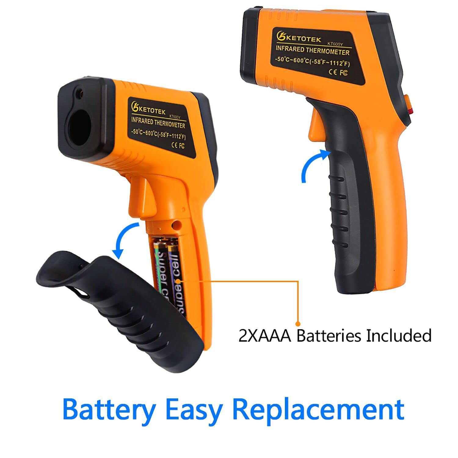 Ketotek Digital Infrared Thermometer Temperature Gun -58°F-1112 °F(-50°C - 600°C) Handheld Non Contact IR Laser Thermometer KT600Y for Cooking Meat Refrigerator Pool Pizza Oven BBQ Food