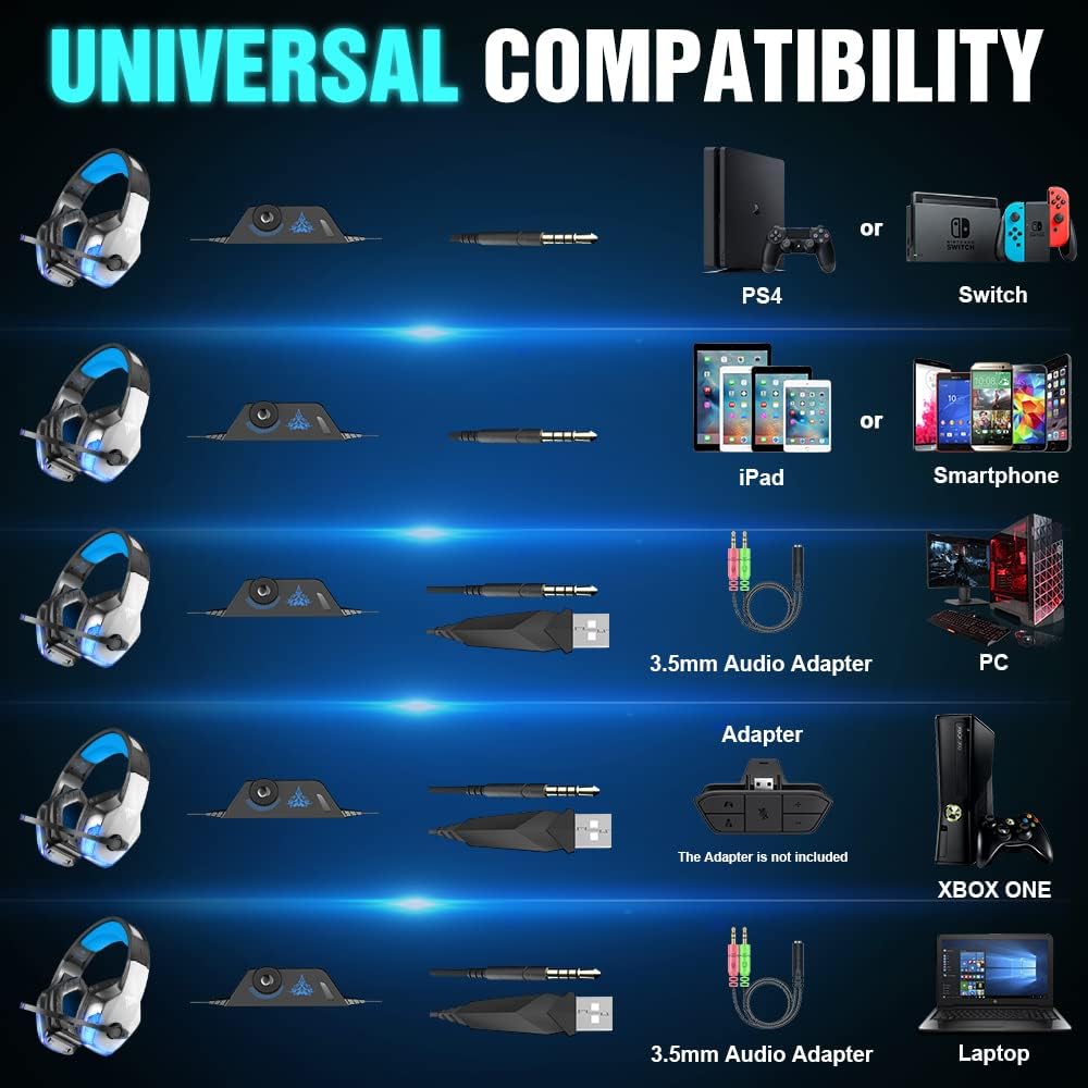 BENGOO V-4 Gaming Headset for Xbox Series X|S, Xbox One, PS5, PC, Mac, Nintendo Switch, Noise Cancelling Over Ear Headphones with Mic, LED Light, 7.1 Surround Sound, Soft Memory Earmuffs, 3.5mm