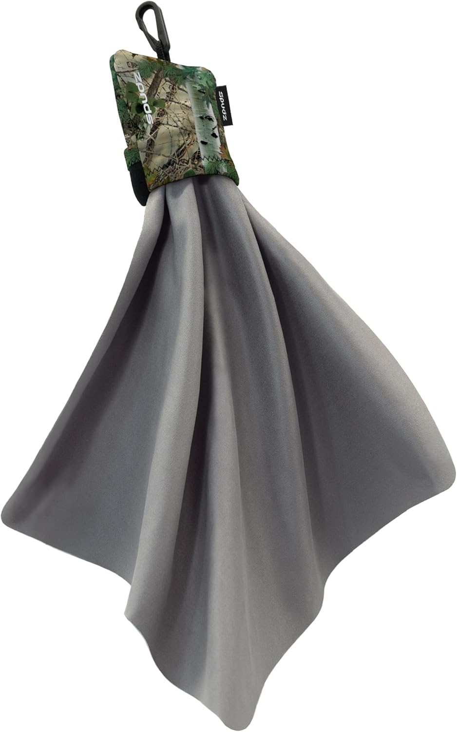 SPUDZ Ultra Microfiber Lens Cleaner – Closable Pouch, Clip-On, Washable – for Optics, Scopes, Glasses | Alpine Mountain Camo, 10 x 10 Inch