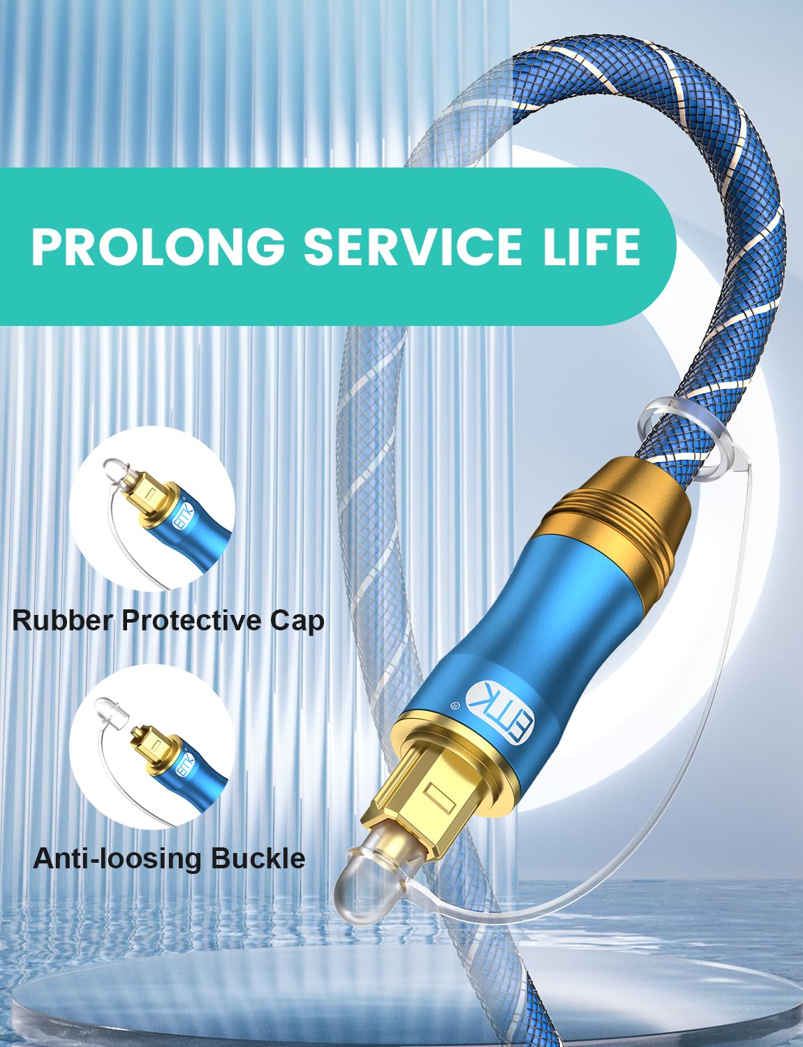 - ✅UNIVERSAL COMPATIBILITY:EMK fiber optic audio cable is adaptable and can connect to various soundbars and home theatres for increased sound clarity with TVs, PS4, Xbox, Blu-Ray players, and more. Stable and reliable with a heat-resistant optical fiber core, this premium TV optical cable can transmit signals without any electromagnetic or radio frequency interference.