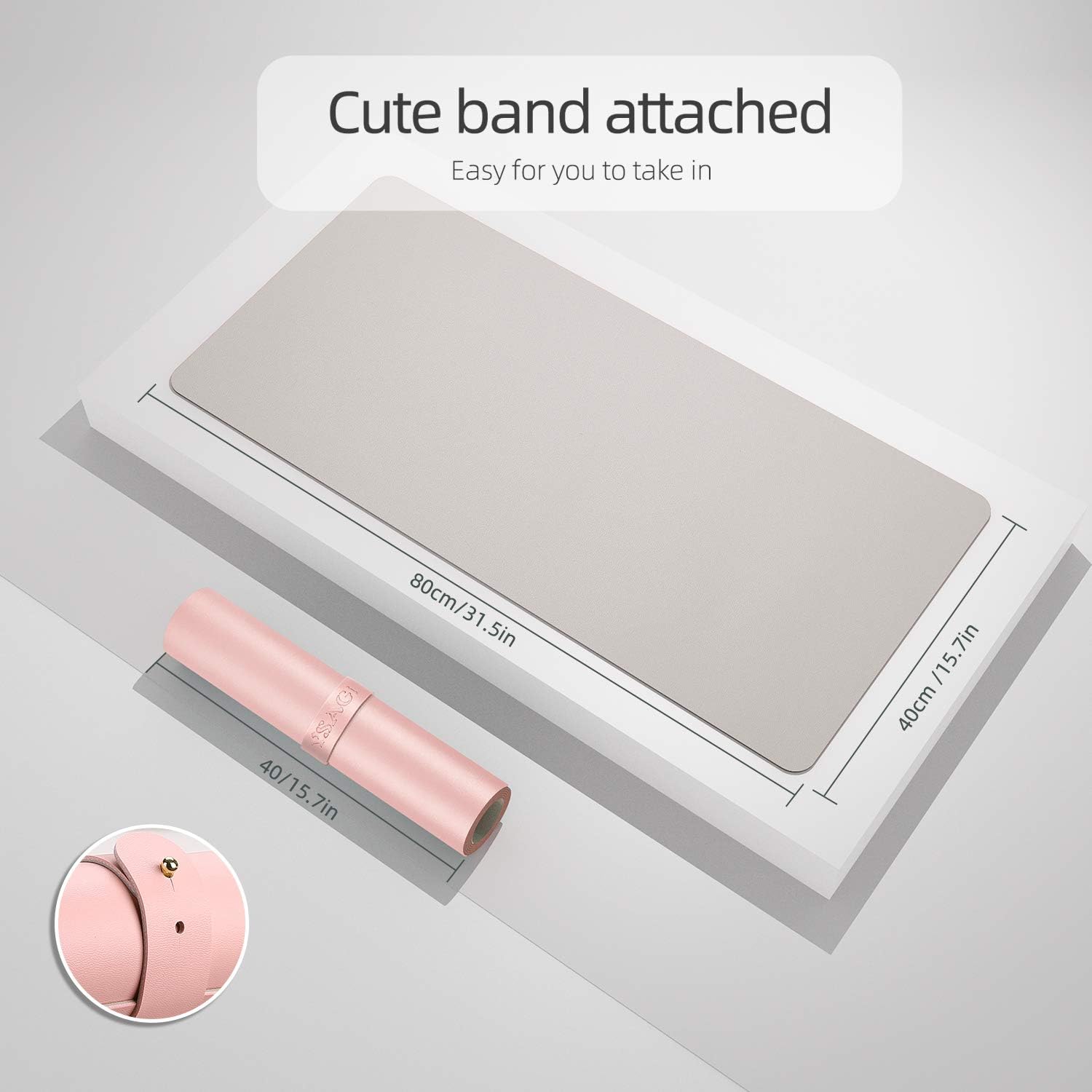 YSAGI Dual-Sided Desk Pad Protector, Desk Mat with Non-Slip - Waterproof PU Leather Office Desk Blotter for Mouse, Keyboard, Writing,31.5" x 15.7",Pink