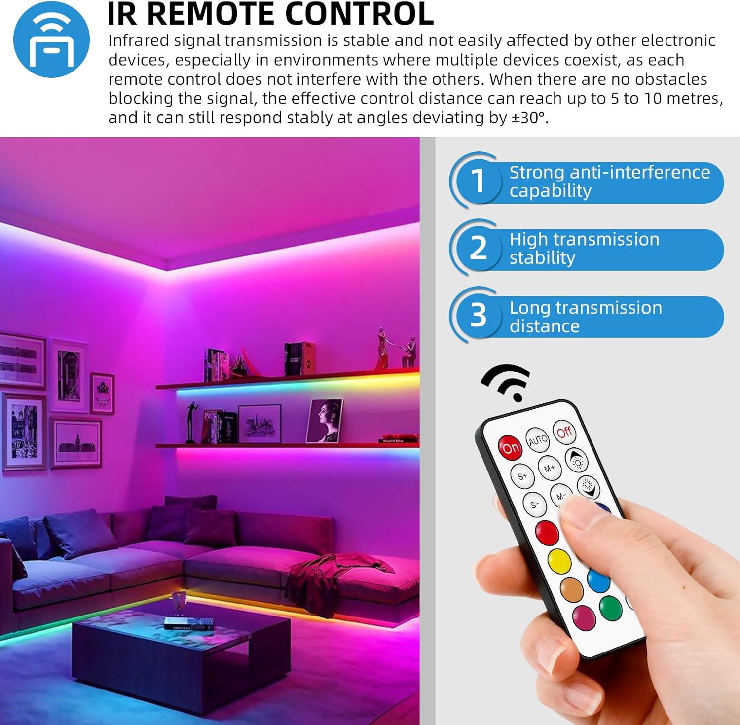 - 21-key infrared wireless remote controller is suitable for WS2811 WS2812B LED dream color strip lights. Widely used in the illumination of emporiums, shopping malls, meeting room, clubs, hotel and performances.