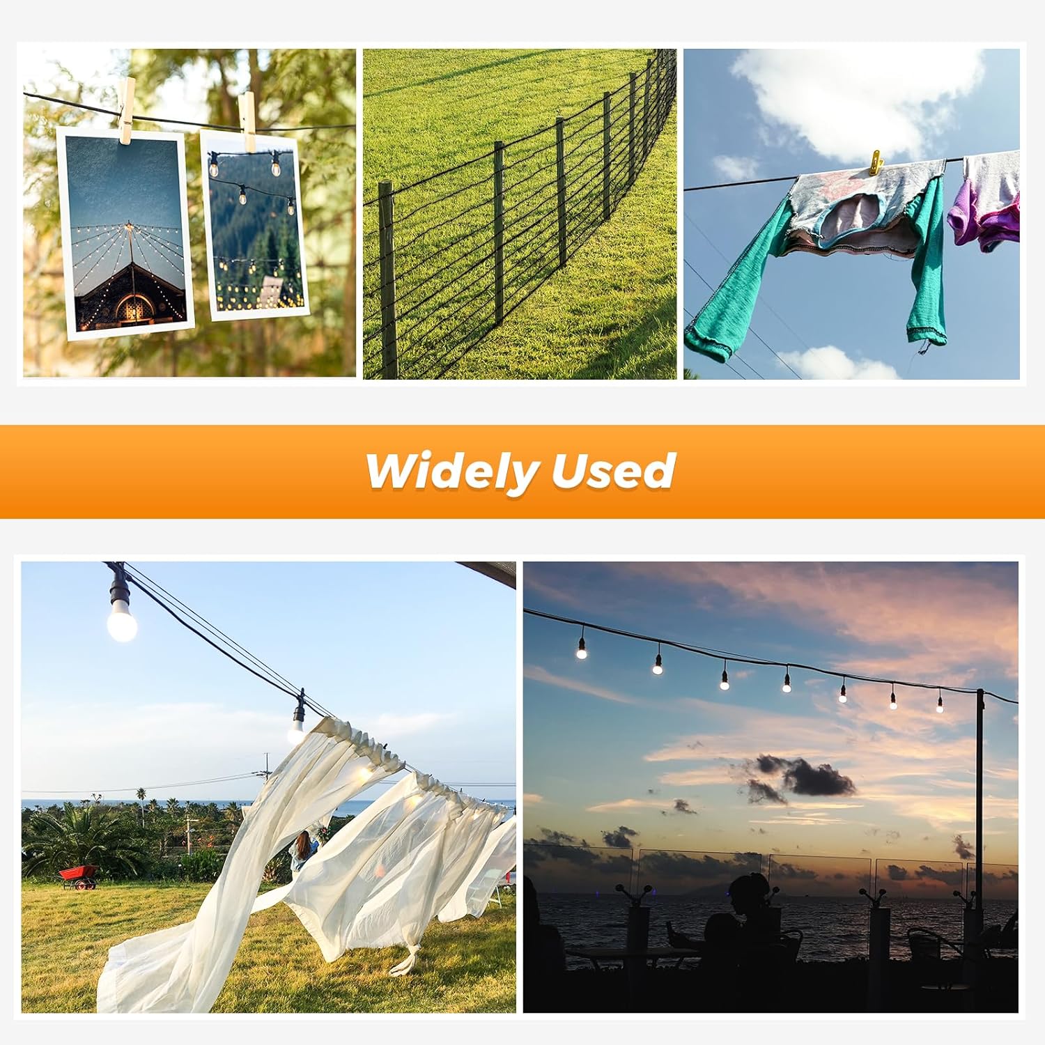 - 【Perfect Guide Wire For Outdoor String Lights】:This cable (7x7) bare OD is 1/16",coated OD is 3/32";breaking strength is 480 lbs and the color of black won’t affect the visual of lights.