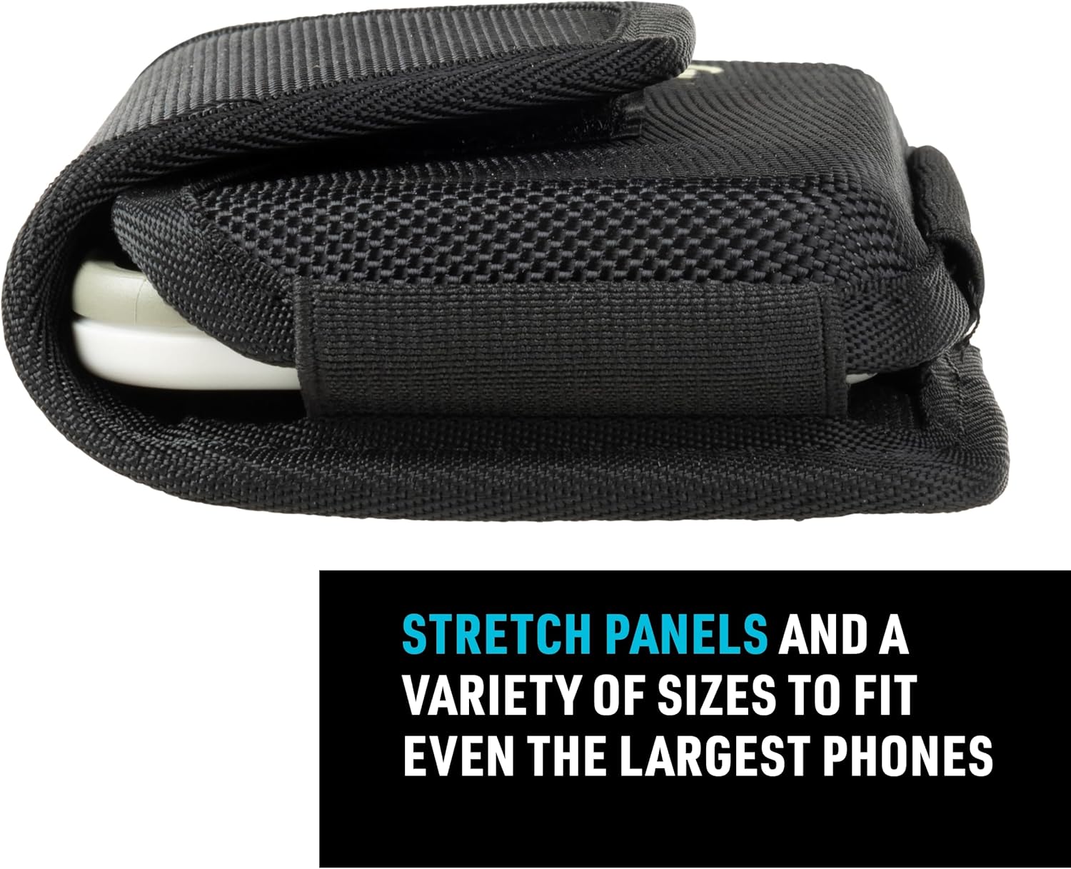 - Cell Phone Pouch: This durable and rugged hardshell phone holster keeps even the largest phones protected and accessible in a fixed horizontal position at your hip