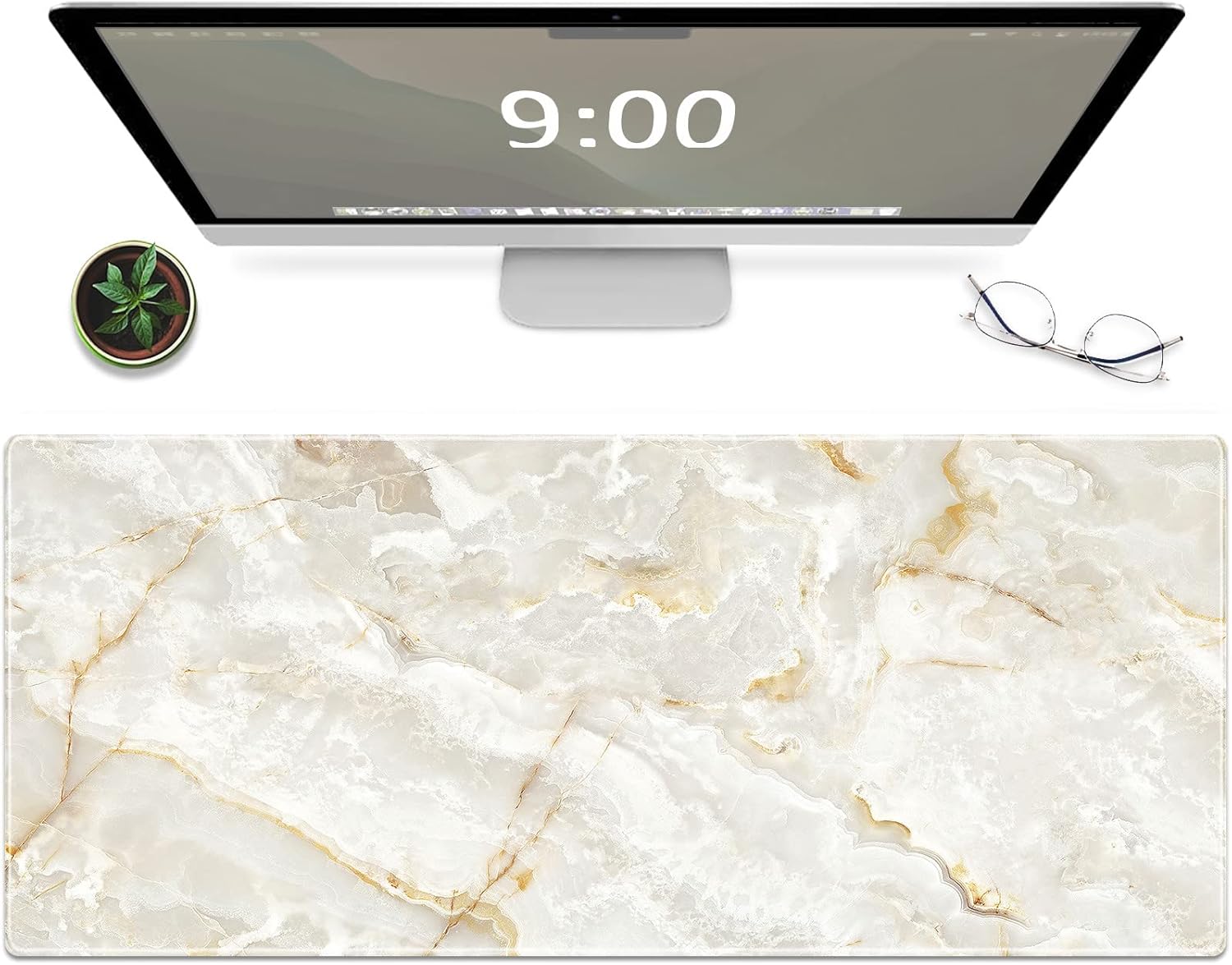 Galdas Large Mouse Pad Marble Pattern XXL XL Large Mouse Pad Mat Long Extended Mousepad Desk Pad Non-Slip Rubber Mice Pads Stitched Edges Thin Pad (31.5x11.8x0.12“)