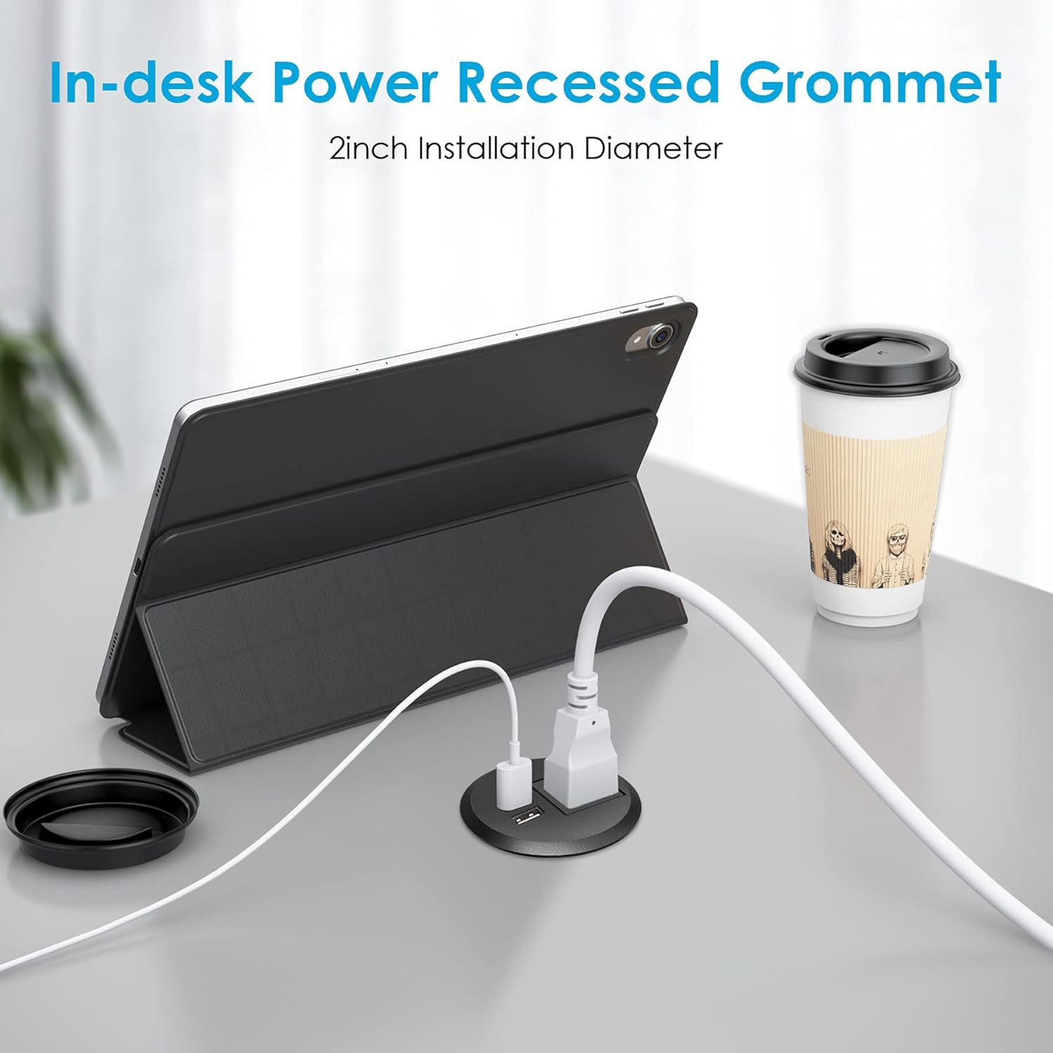 - Creative Recessed Desktop Power Grommet Design Space Saving:This unique grommet power outlet get rid of hefty adapters and messy plugs. Ideal for charging multiple devices at the home/office/school.