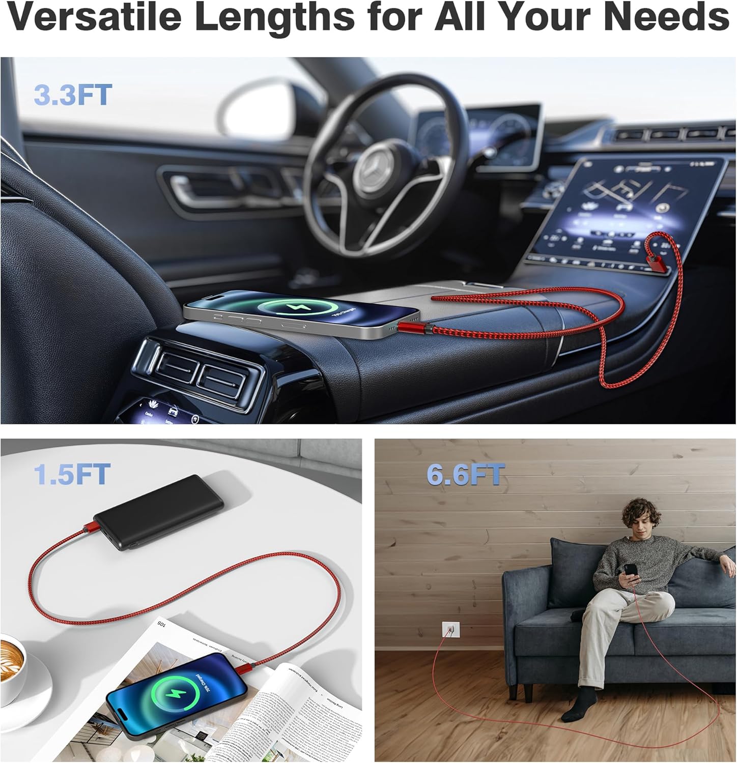 Elebase USB Type C Charger Cable 3 Pack 1.5/3.3/6.6FT,Car Charging Cord for iPhone 16 Pro Max Plus,Kindle Fire HD 7 2022 12th,10 9th 2019,8 10th 2020,Paperwhite 11th 2021,Samsung Galaxy S22 S23 S24