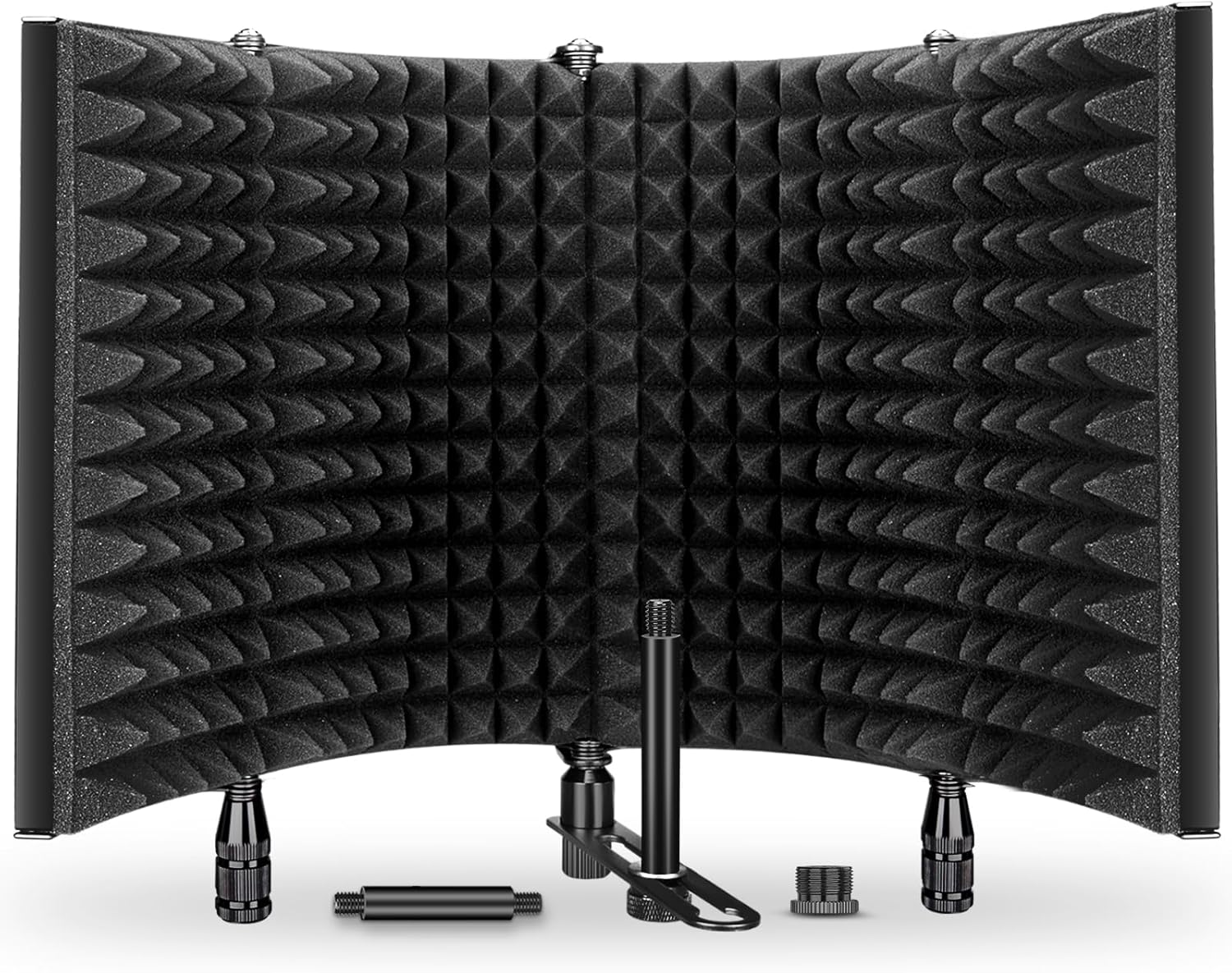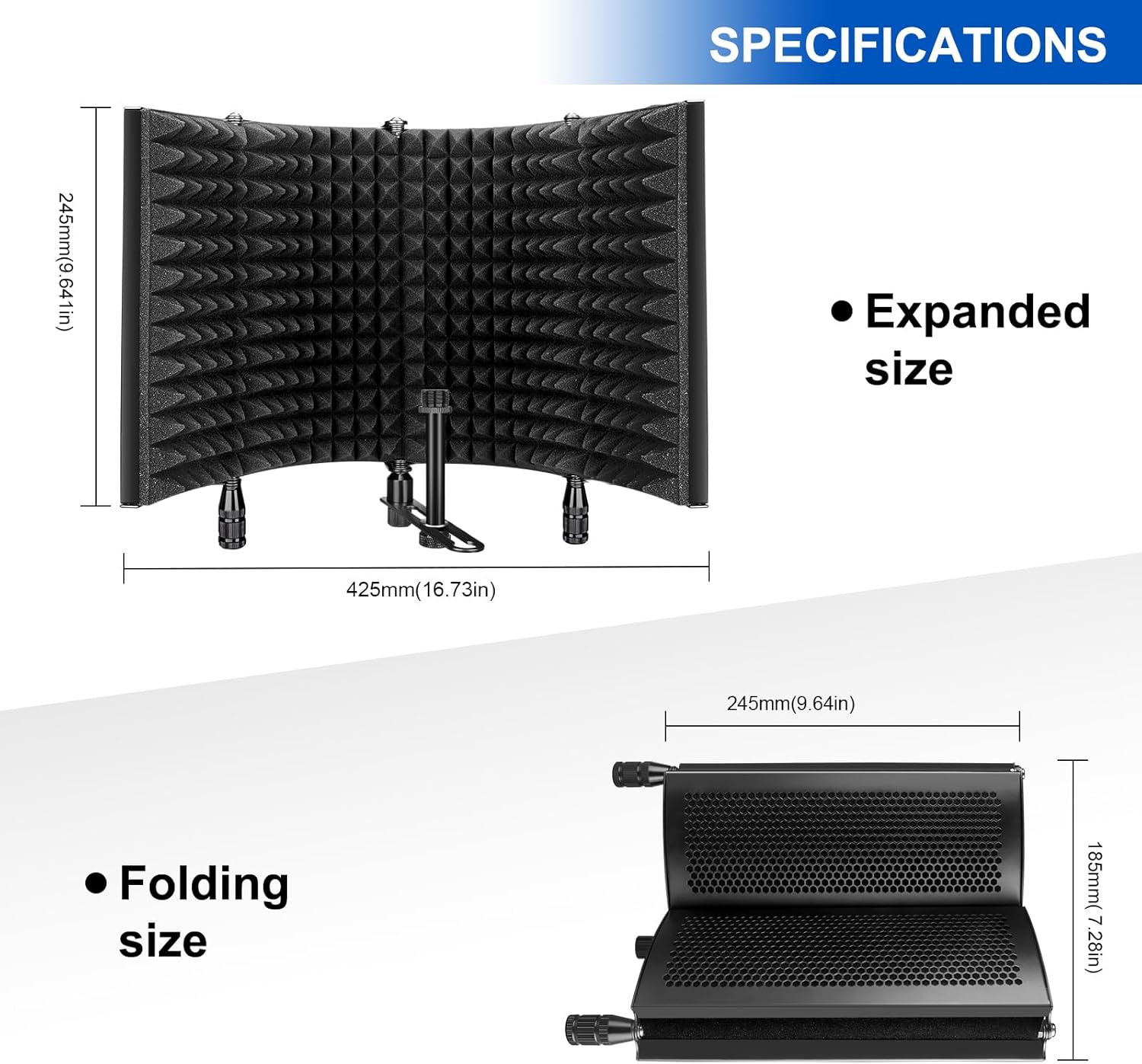 - ♪【Design Style】♪: Block unwanted sounds from entering your microphone by using this Microphone Isolation Shield. This acoustic shield features an acoustic foam front and a vented metal back plate. The foldable design makes it convenient for you to take it to any place.