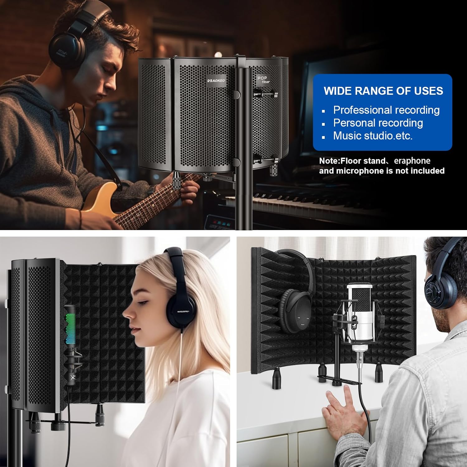 Aokeo Studio Recording Microphone Isolation Shield, Pop Filter.High density absorbent foam is used to filter vocal. Suitable for blue yeti and any condenser microphone recording equipment