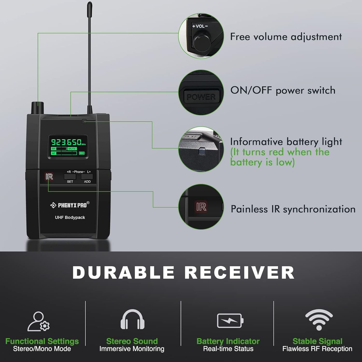 - COMPATIBLE WITH PTM-10: Compatible with Phenyx Pro PTM-10 system. One PTM-10 transmitter can add as many bodypack receivers as you want