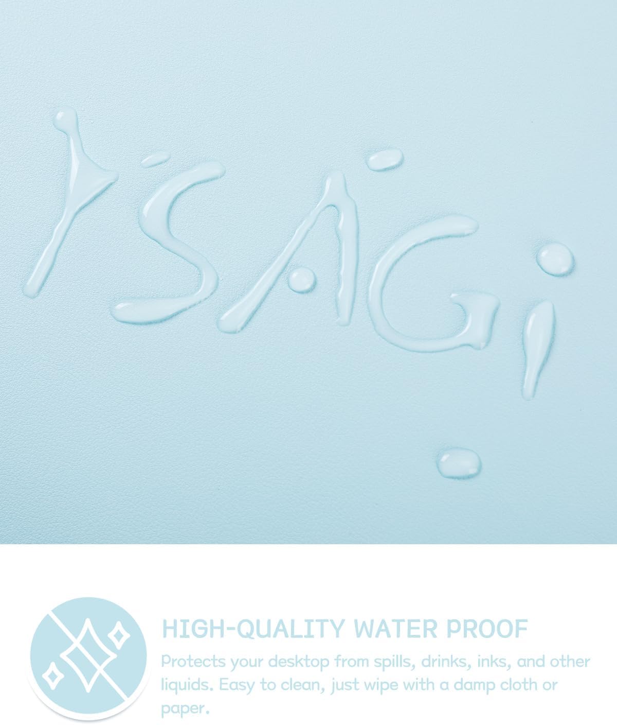 YSAGi Non-Slip Leather Desk Pad, Waterproof Laptop Computer Desk Keyboard Mat, Table Protector Blotter Mat, Large Mouse Pad for Office/Work/Home/Decor(Sky Blue, 31.5" x 15.7")