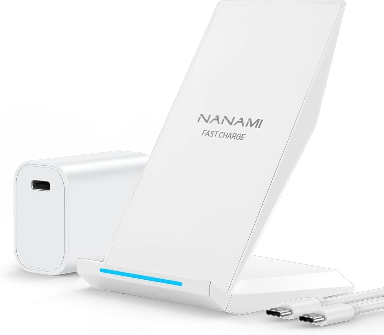 NANAMI Fast Wireless Charger, Qi Certified Charging Stand[with 20W PD Charger] 7.5W for iPhone 16/16 Plus/16 Pro/16 Pro Max/15/14/13/12,10W for Samsung Galaxy S25/S25+/S25 ultra/S24/S24 Ultra/S23/S22