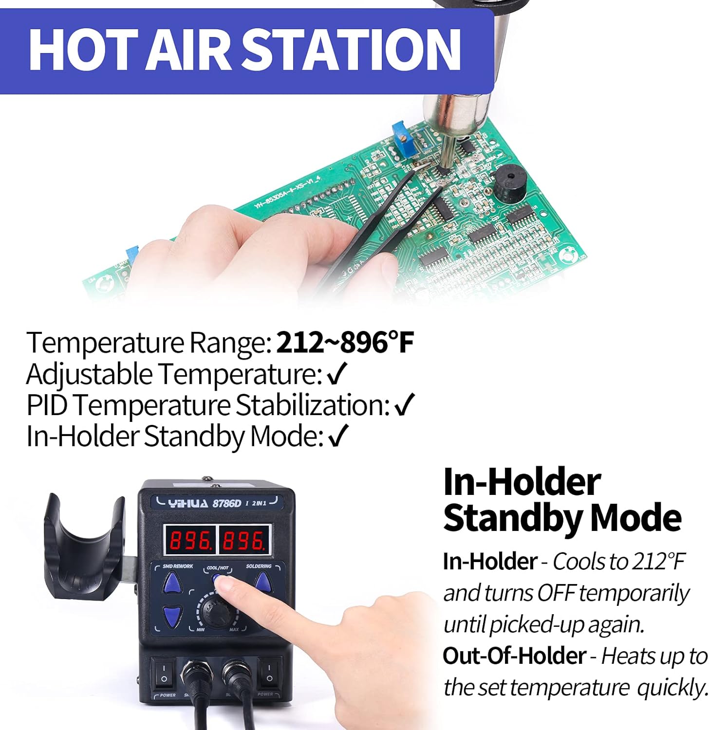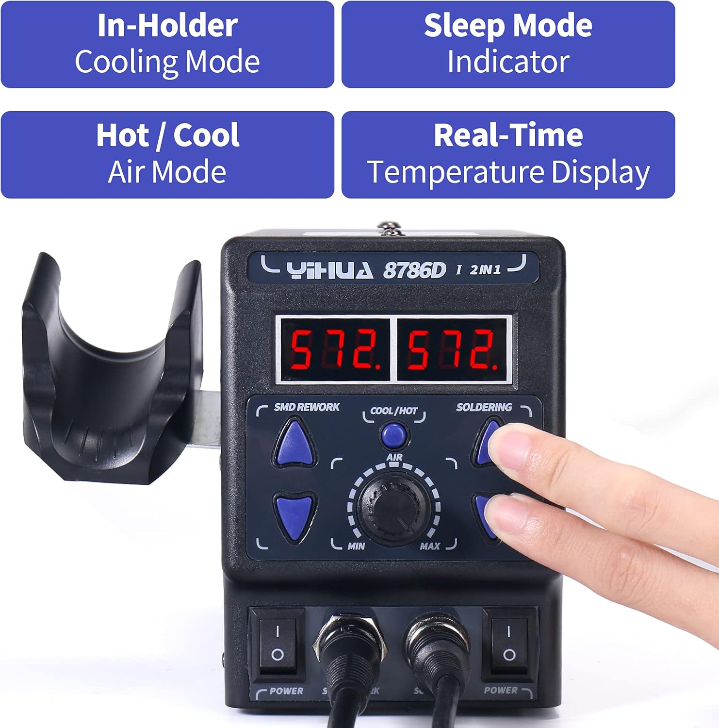 YIHUA 8786D I 2 in 1 Hot Air Rework and Soldering Iron Station with °F /°C, Cool/Hot Air Conversion, Digital Temperature Correction and Sleep Function