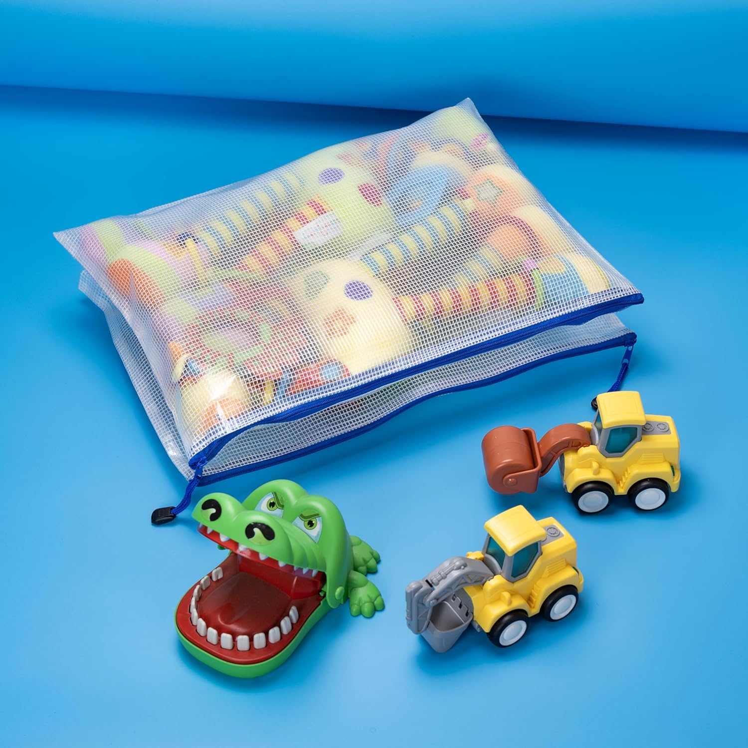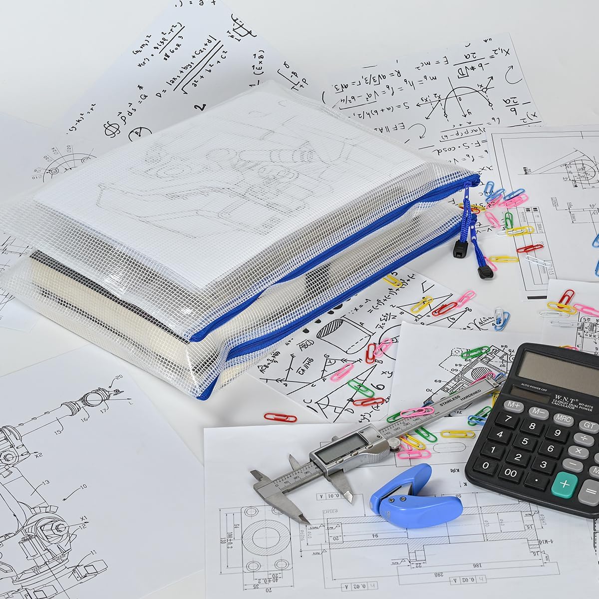 AUSTARK 10 Pcs Zipper File Bags, Waterproof Plastic Mesh Pouch for Office School, Board Game Storage Bags (B4 Size 15''x11'', White and Blue)