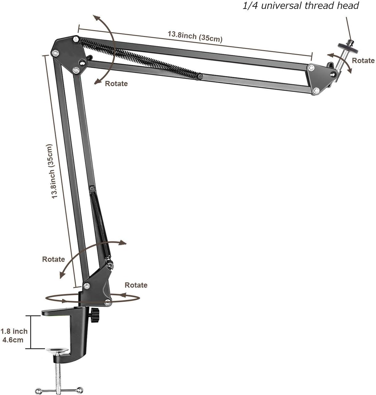 - 【Totally adjustable】The head, arm joint and the base are flexible, you can adjust the swing arm angle and height as your wish to meet your different application scenarios like video recording, live streaming, baking; The Jaw Clamp fit the Desk, Table, Sideboard Max thickness 4.6cm (1.8 inches)