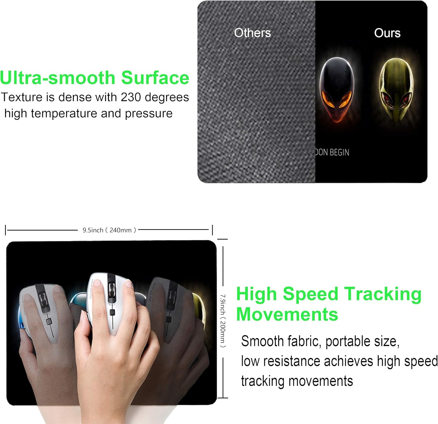 - 【Ultra-smooth Surface】 Texture is denser with 230°F and high pressure treatment. Mouse can be quickly moved and accurately positioned on the slick surface. Great for your laptop,computers & PC.