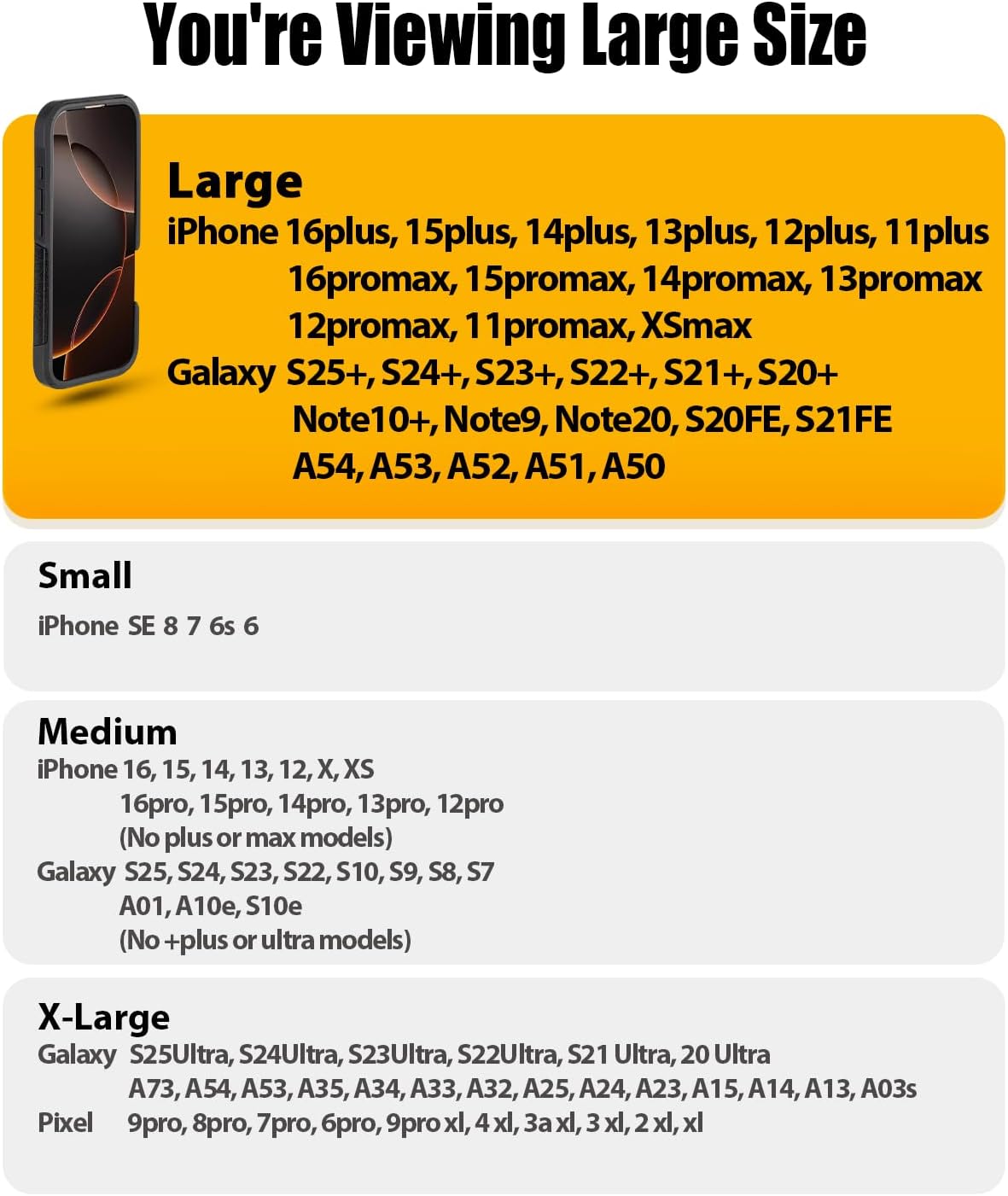 - Large brown cellphone belt holder case is designed for iphone 16 plus, 16 pro max, iPhone 15 plus, pro max and all older pro max and plus models.