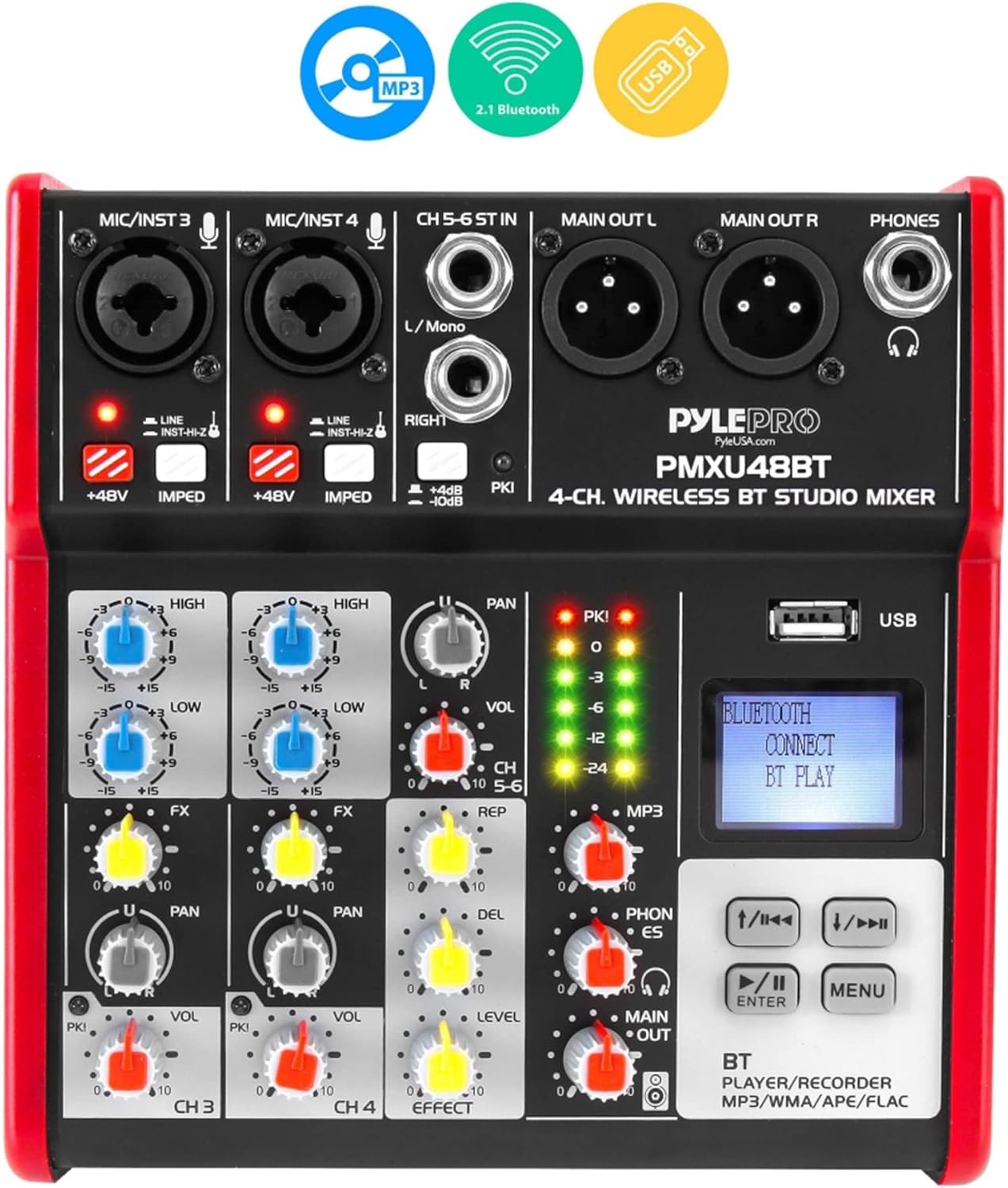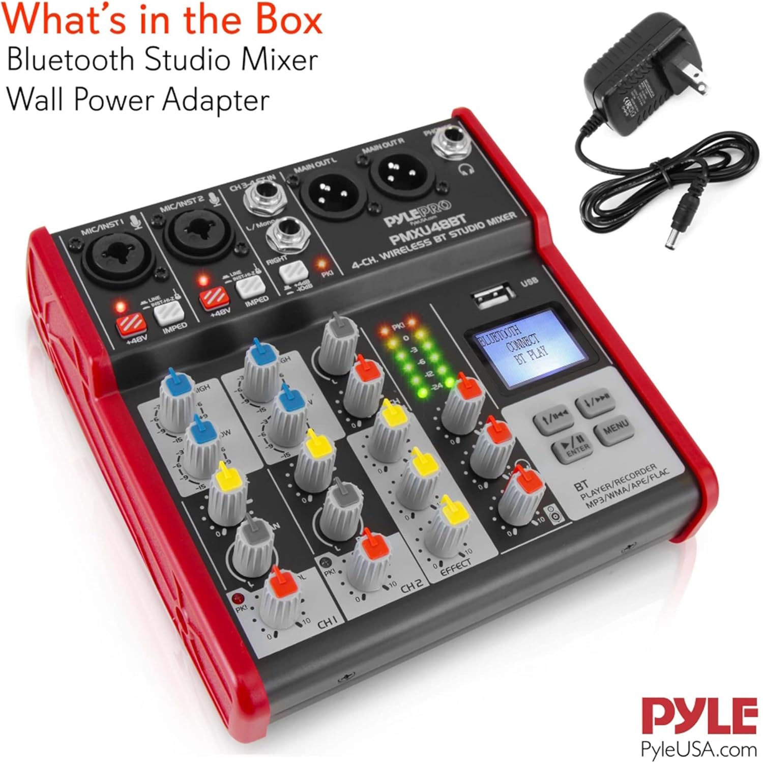 Pyle Studio Audio Sound Mixer Board - 4 Channel Bluetooth Compatible Professional Portable Digital DJ Mixing Console W/USB Mixer Audio Interface - Mixing Boards for Studio Recording