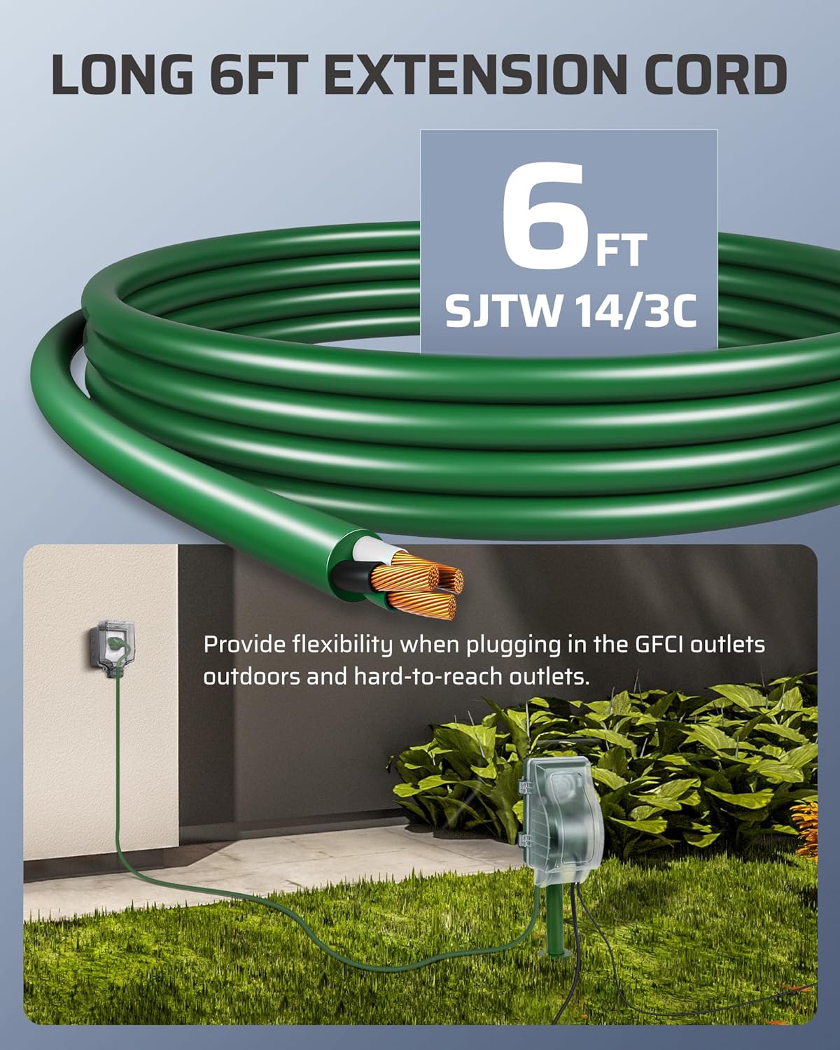 - [Heavy Duty & Safe] ETL certified outdoor power strip timer supports up to 15A/1800W, built with a durable 6FT 14/3C SJTW cord, overload protection switch, and fire-resistant PC material for reliable safety