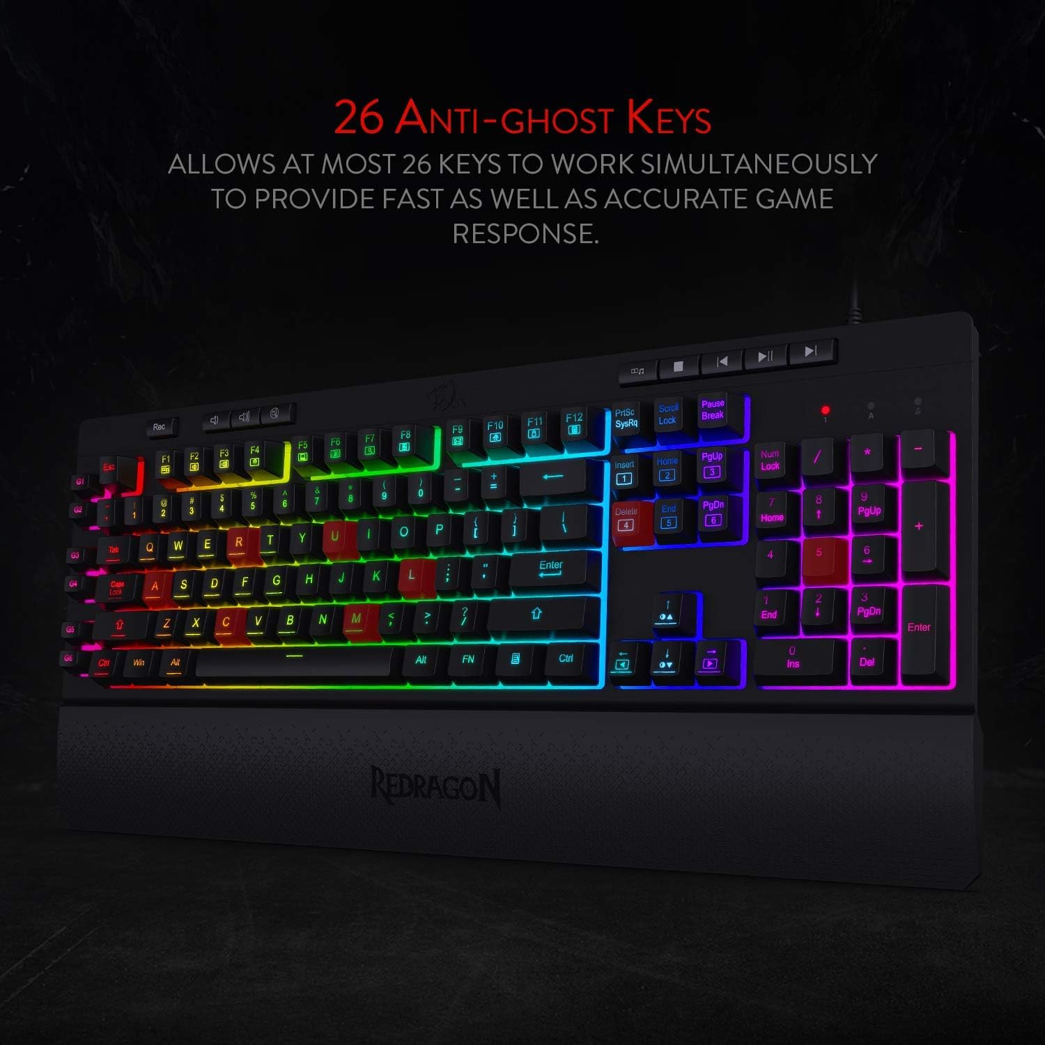Redragon K512 Shiva RGB Backlit Membrane Gaming Keyboard with Multimedia Keys, Linear Mechanical-Feel Switch, 6 Extra On-Board Macro Keys, Dedicated Media Control, Detachable Wrist Rest