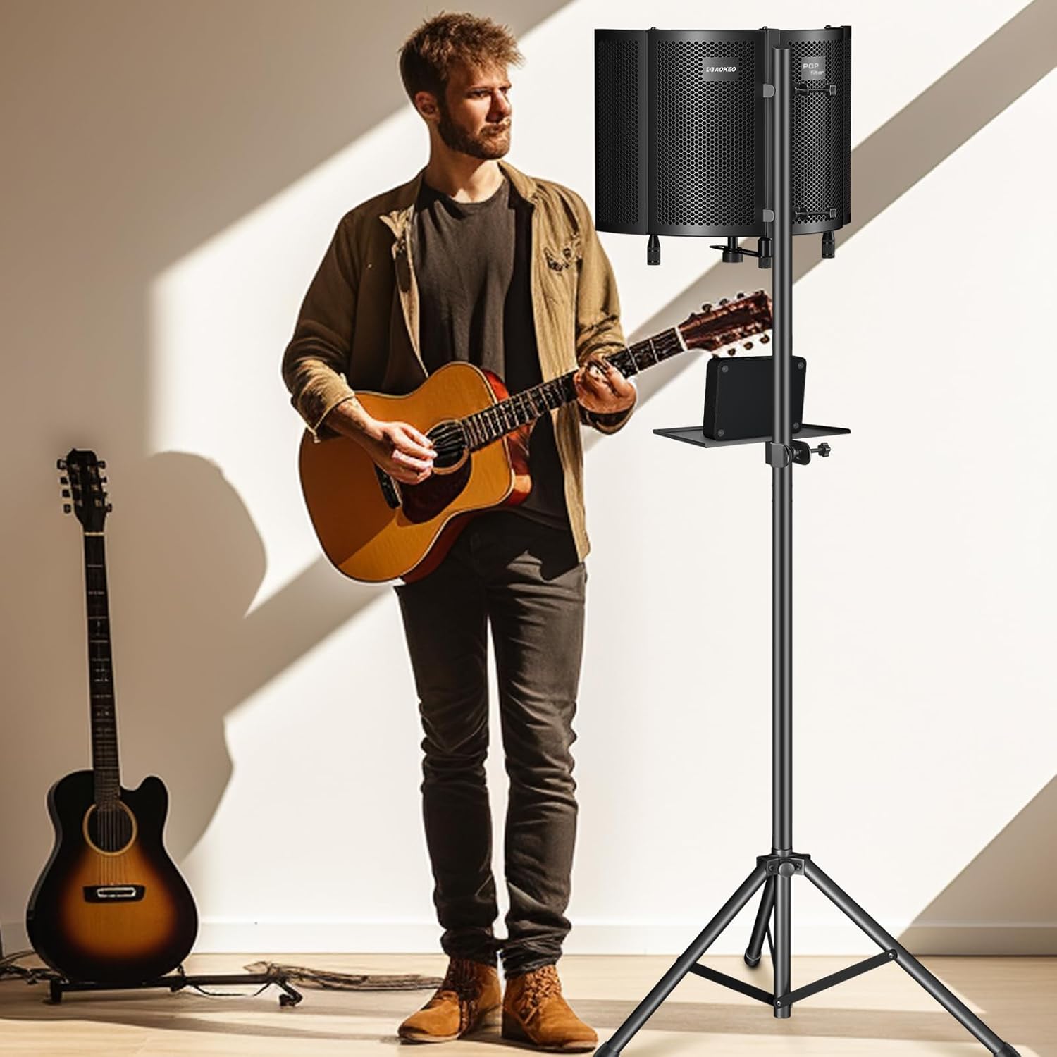 Professional Studio Recording Microphone Isolation Shield, Pop Filter,High density absorbent foam is used to filter vocal. Suitable for Blue Yeti and other condenser microphones (AO-504 With Stand)