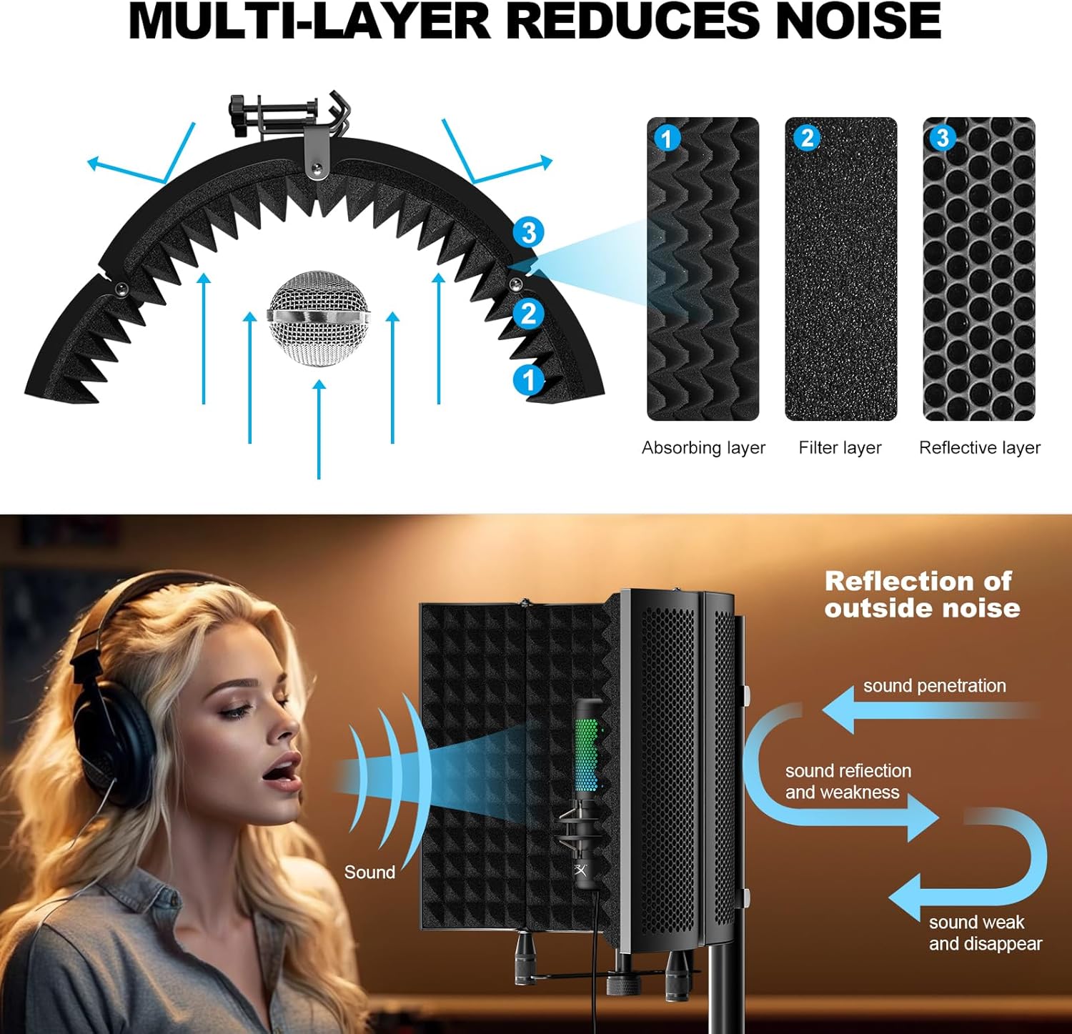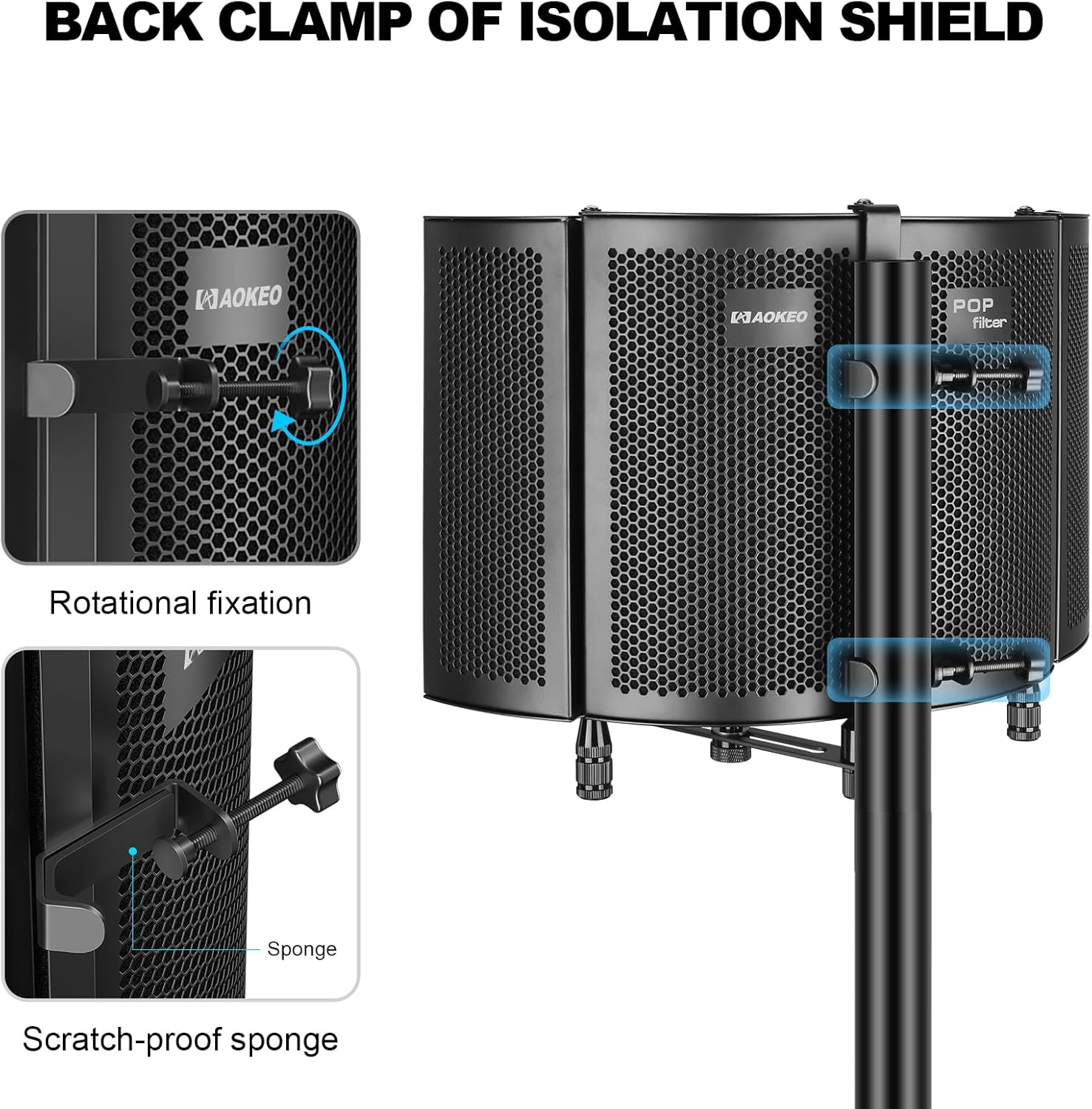- âȘăSpecial recordingăâȘ: This acoustic shield features an acoustic foam front and a vented metal back plate. If you need to record in the studio, this Microphone Isolation Shield will give you unexpected results.