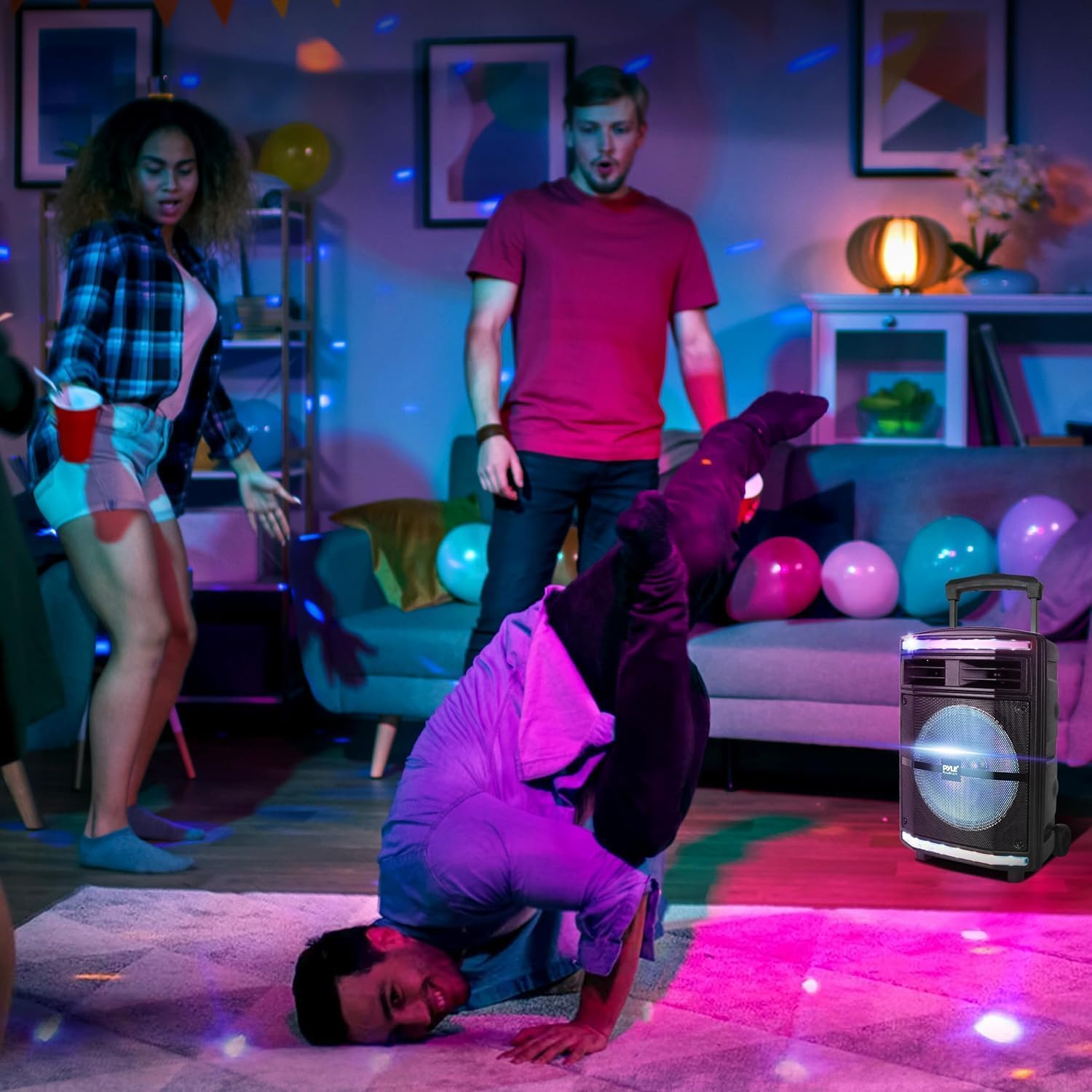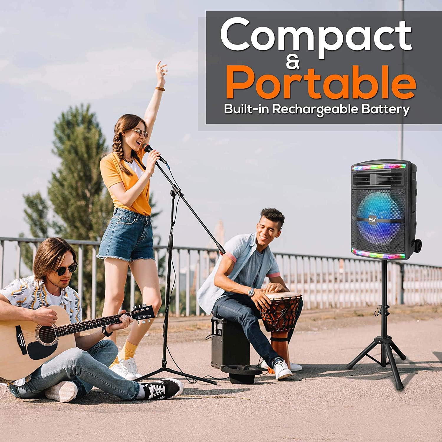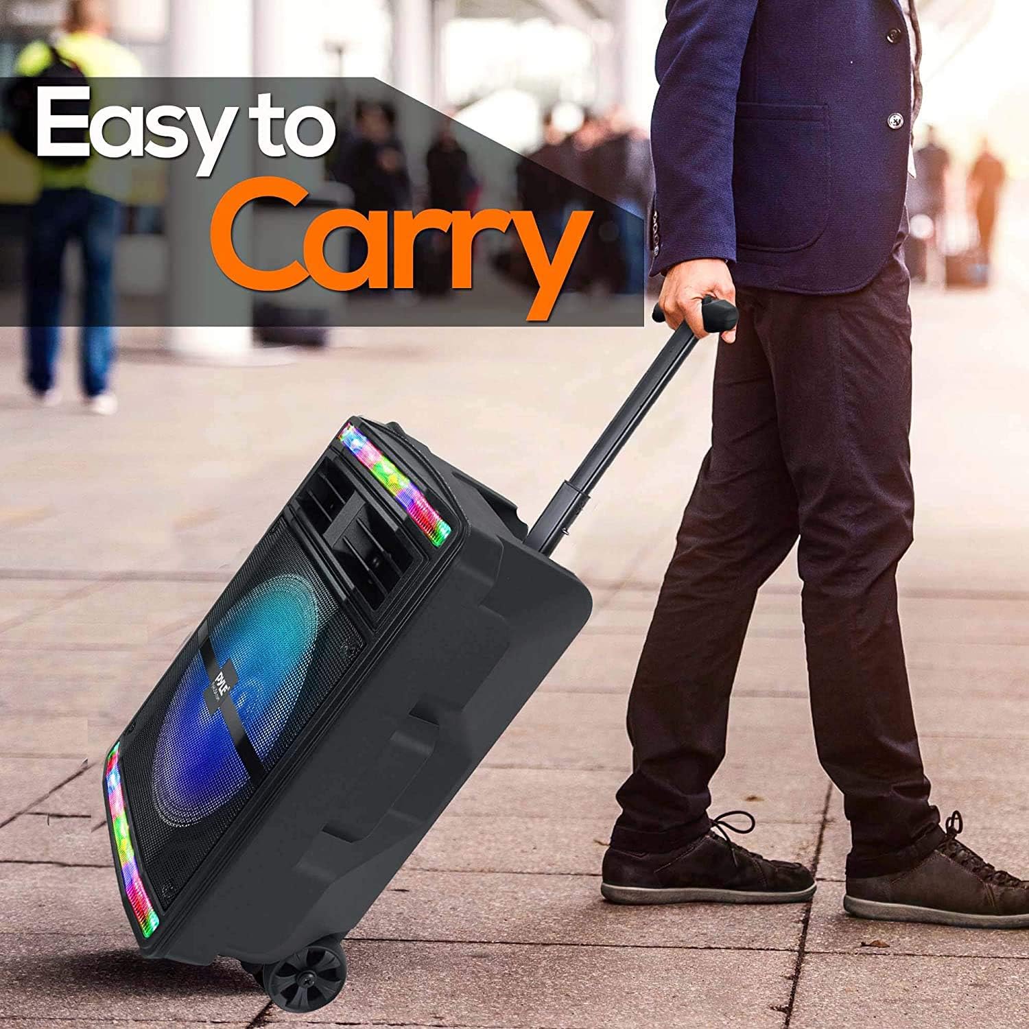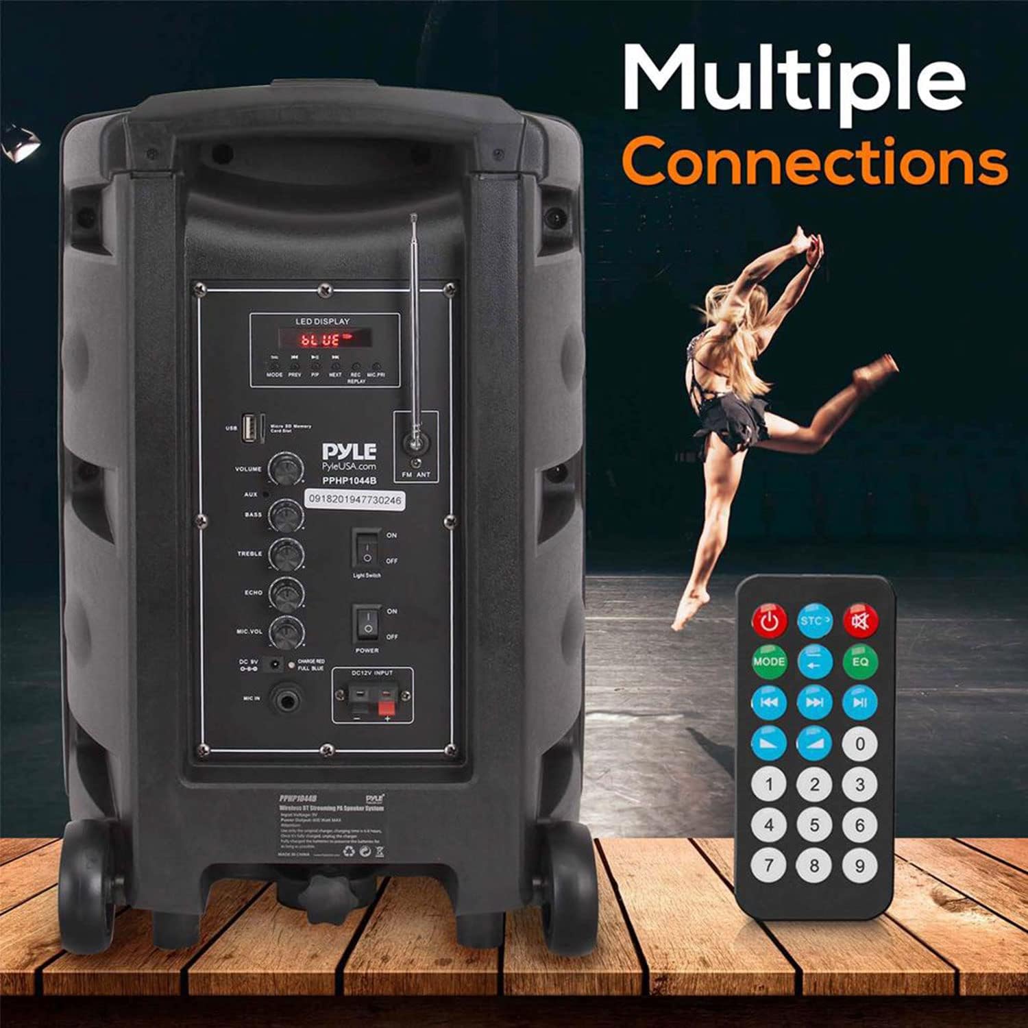 Pyle Portable Bluetooth PA Speaker System - 600W Bluetooth Speaker Portable PA System W/ Rechargeable Battery, Party Lights, MP3/USB SD Card Reader, Rolling Wheels - Pyle PPHP1044B