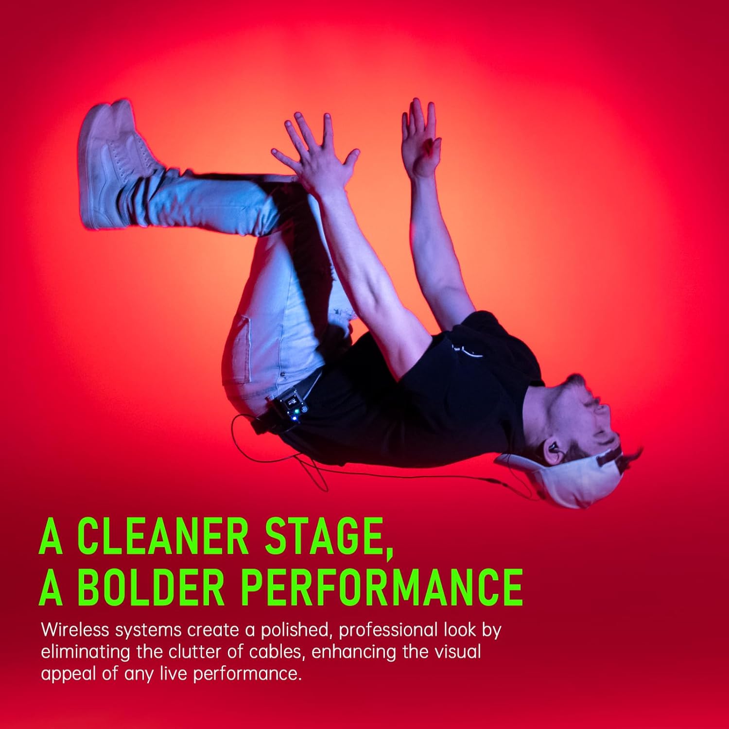 - Great 2.4GHz Band: 2.4GHz wireless in-ear monitor system create your personal or team's monitor system; uncompressed wireless signal transmission, low noise and latency.Mono balanced XLR or mono unbalanced TS input.Provides smooth frequency response with any headphones