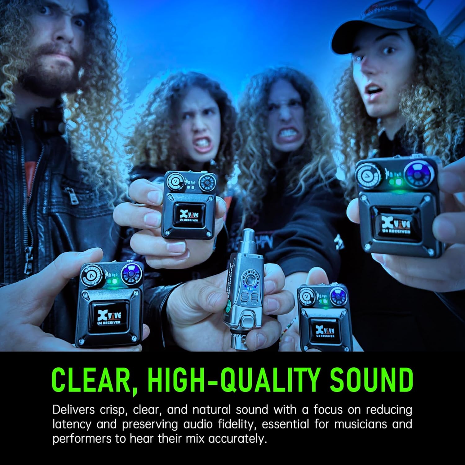 Xvive U4R4 Wireless in-Ear Monitor System Professional IEM System,1 Transmitter and 4 Beltpack Receiver for Studio, Band Rehearsal,Live Performance(U4R4)
