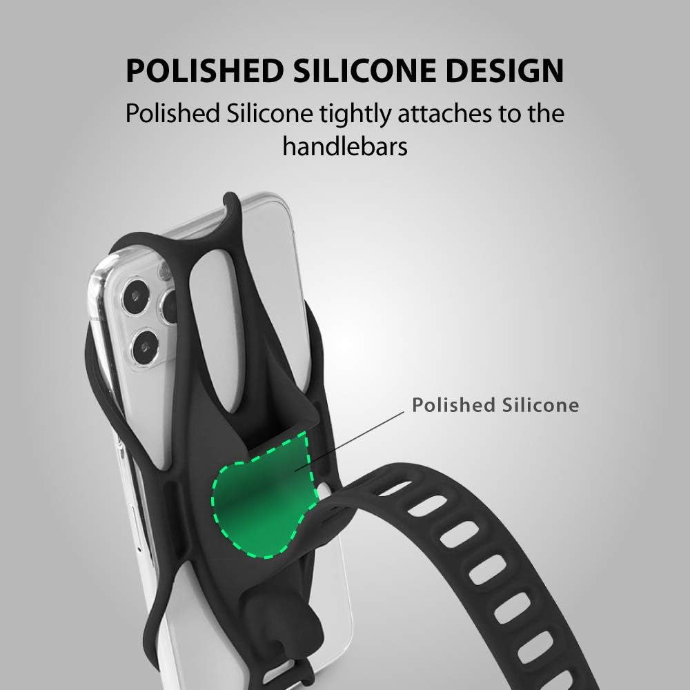 BONE Bike Tie 3, Bike Cell Phone Mount for Handlebar, Scratch-Free Silicone Holder with Anti-Slip Design, Universal Cycling Phone Holder Compatible with Most Smartphones (Black - Handlebar)