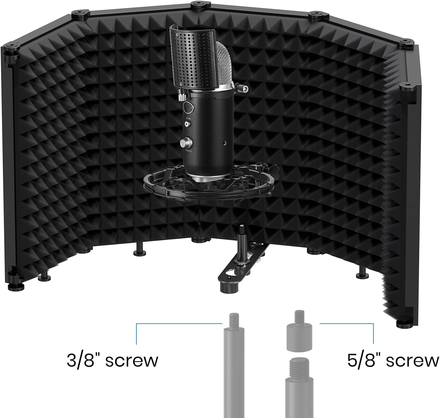 - 【Universal & Compatible】 Metal 3/8 conversion 5/8 nuts are provided, which are compatible with most microphone stands and shock mounts. No more worry about compatibility.