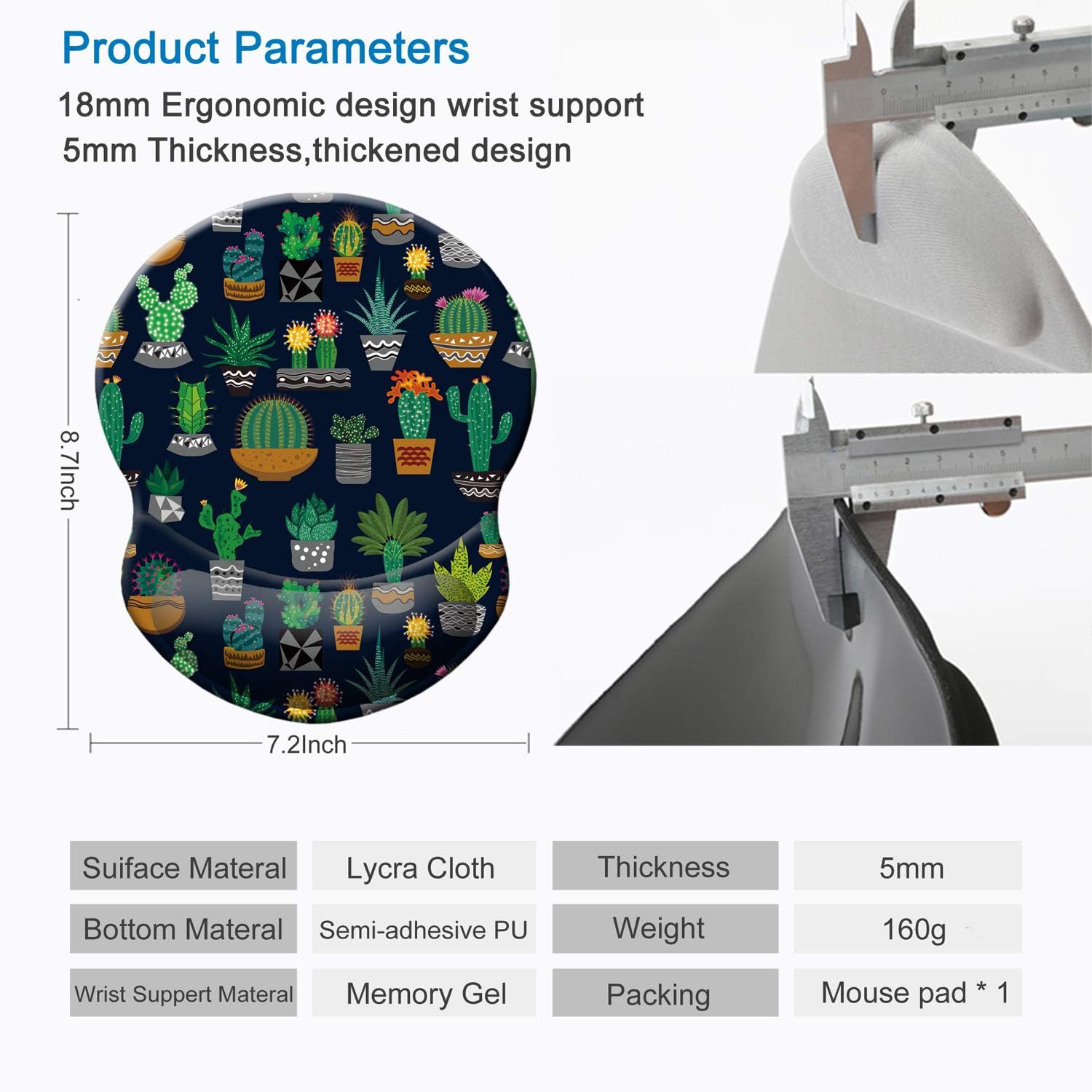 ITNRSIIET Ergonomic Mouse Pad with Gel Wrist Support Small Wrist Rest Smooth Surface Non-Slip PU Base Comfortable Office Supplies Pain Relief, 8.7 x 7.2 inches, Cute Cactus with Black Design