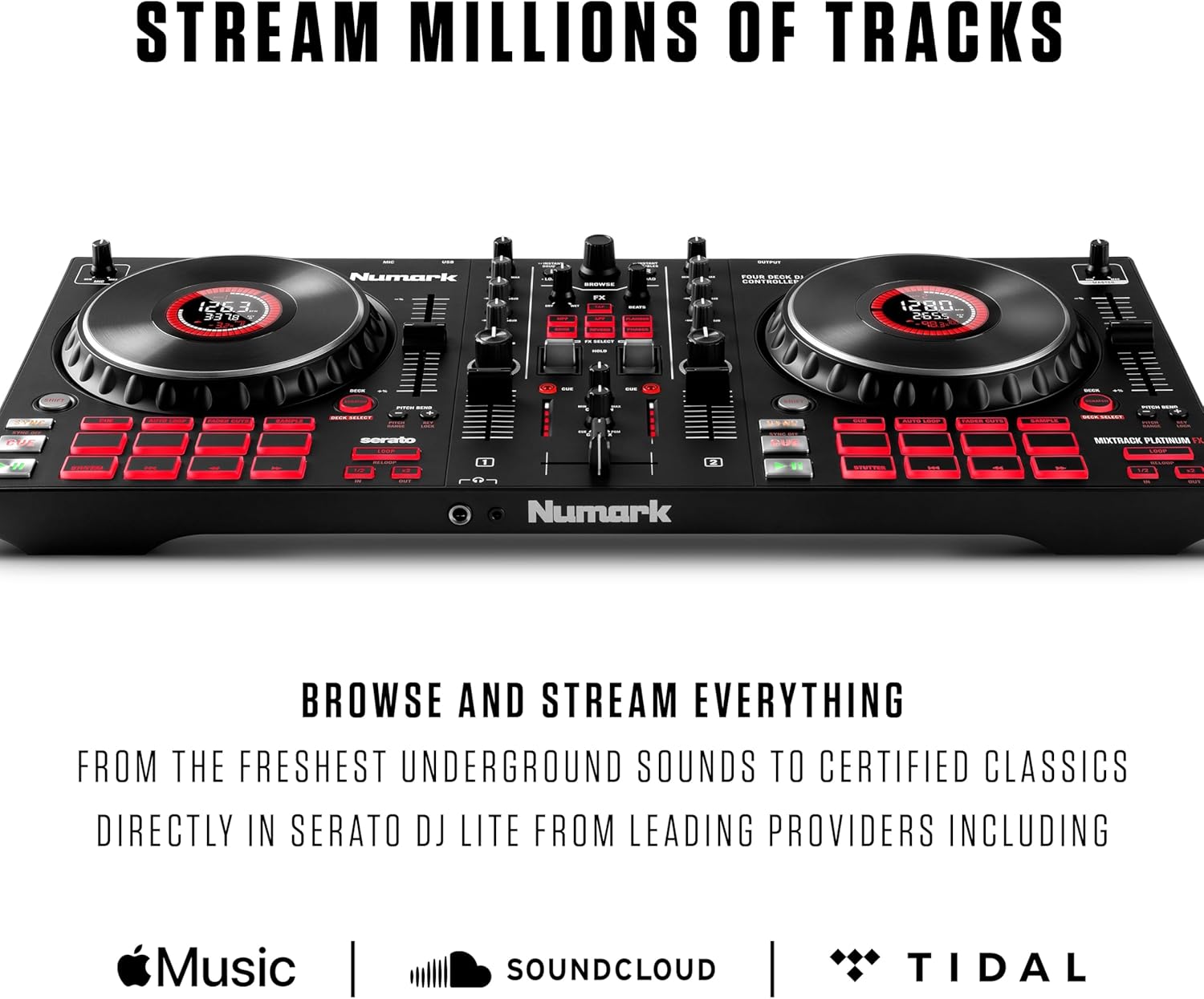 Numark Mixtrack Platinum FX Serato DJ Controller with Jog Wheel Displays, 4 Decks, Mixer, Effects Paddles and (Audio Interface)