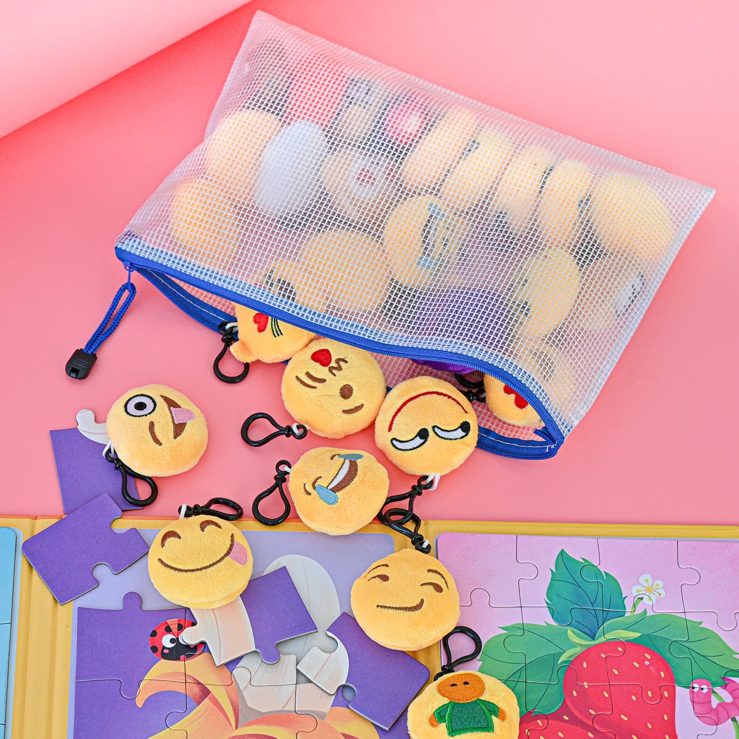 AUSTARK 20 Pcs Zipper File Bags, Plastic Mesh Pouch, Board Game Storage Bag, Waterproof Bags for Office School (B5 Size 11.4''x8.2'', White and Blue)