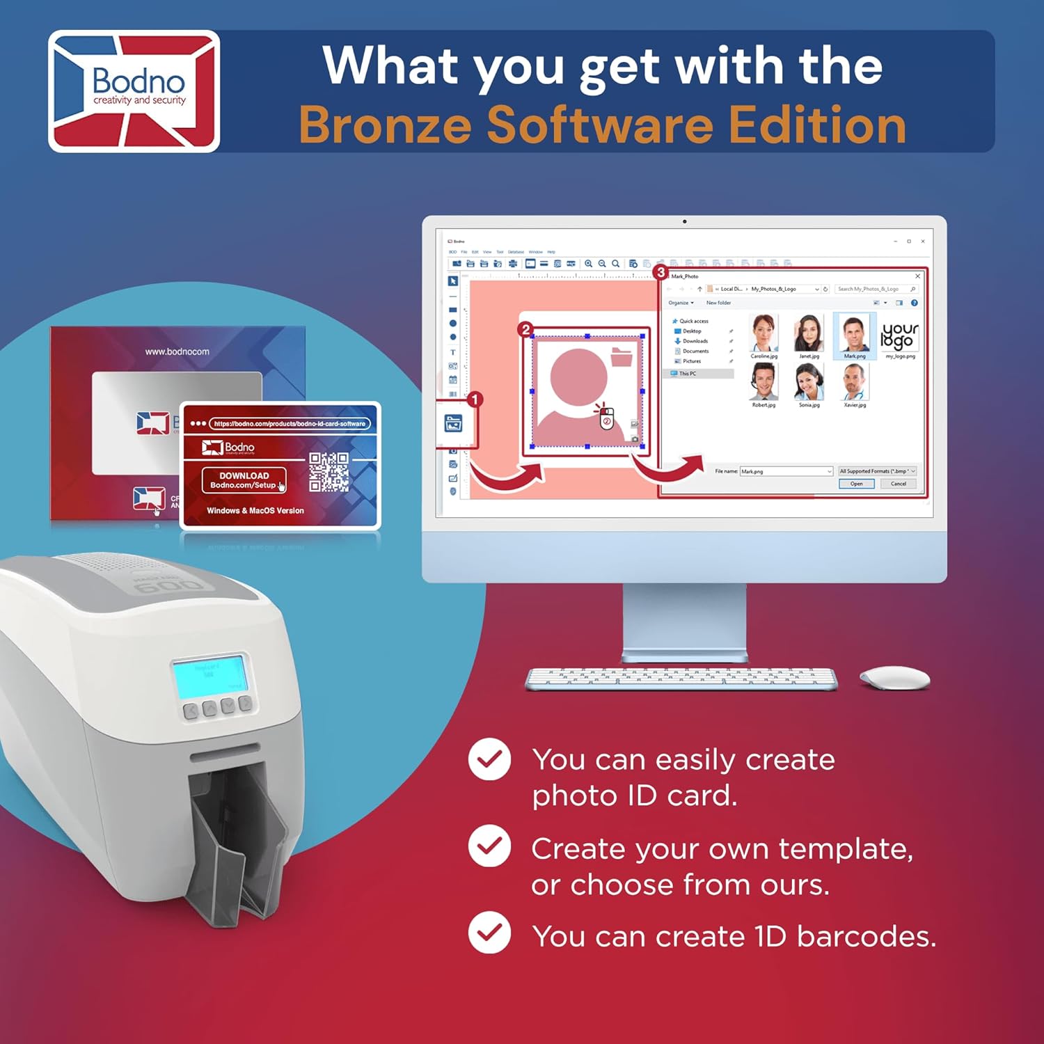 - BODNO BRONZE EDITION WITH ONE-TIME LICENSE AND ACTIVATION CODE: User-friendly software featuring pre-made templates and intuitive drag-and-drop design capabilities for ease of use.
