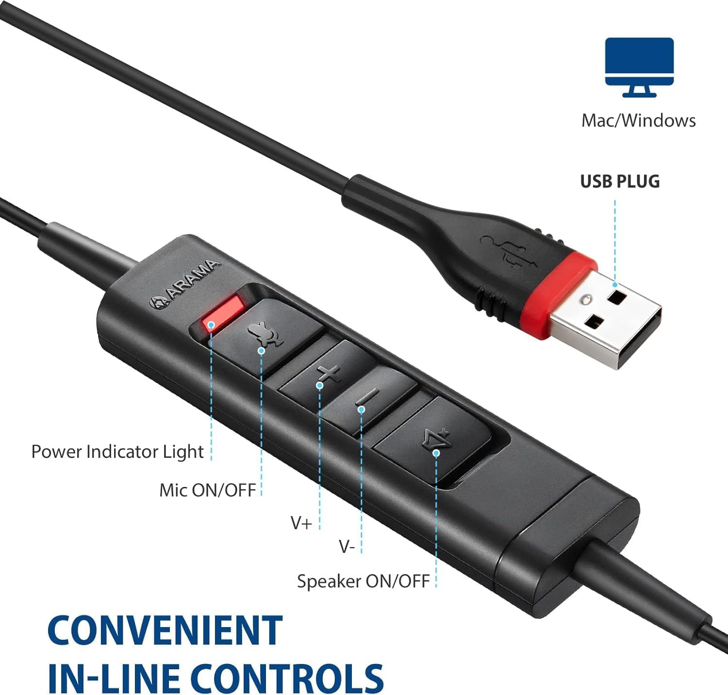 - ✅EASY TO USE: Convenient inline Volume Switch & Mic Mute button for easy access, just one press the key to control your sound when talking. Enjoy skype chat and hear streaming music with USB Headset.