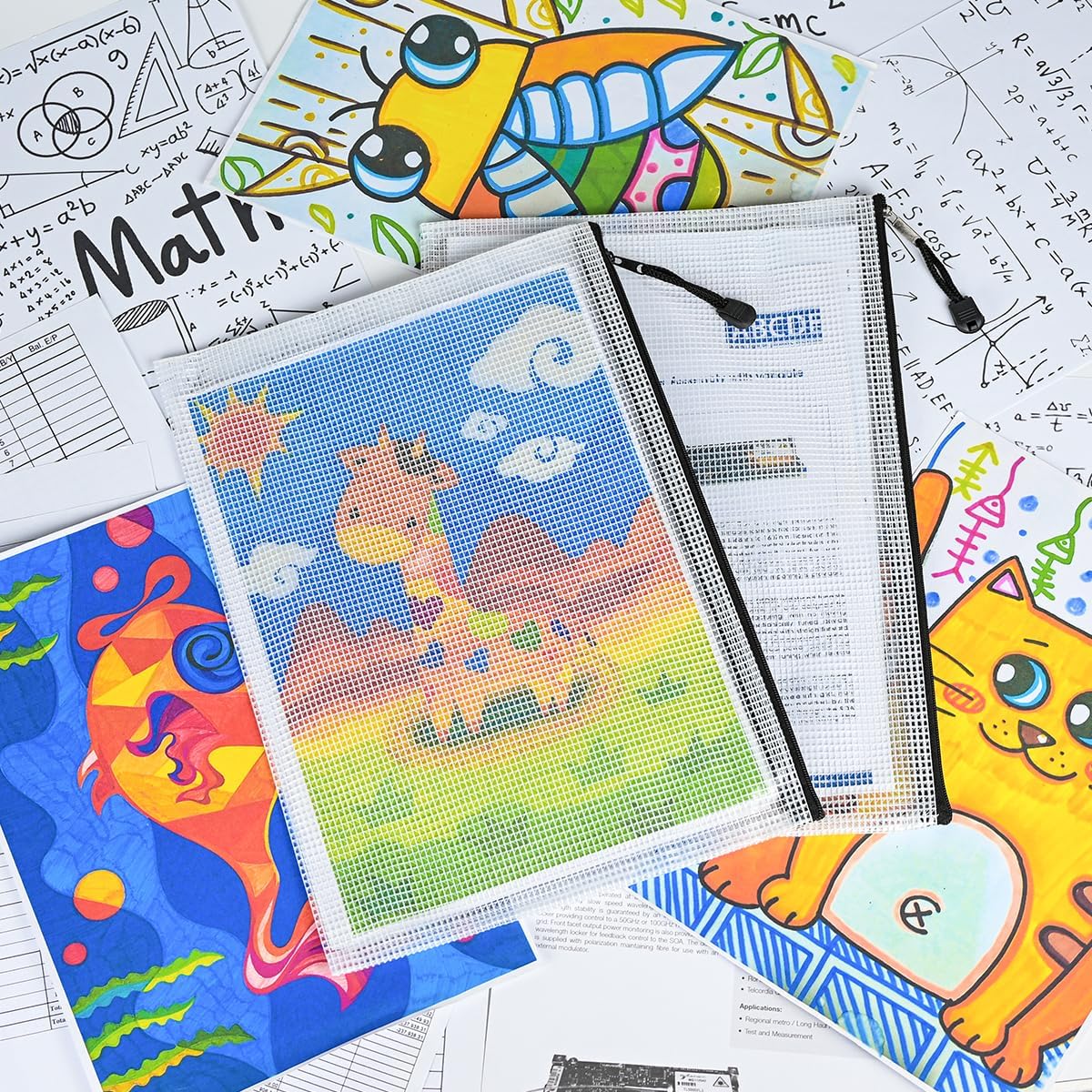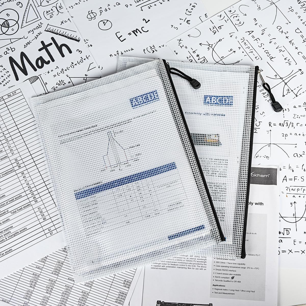 AUSTARK 20 Pcs Zipper File Bags, Plastic Mesh Pouch, Board Game Storage Bag, Waterproof Bags for Office School (A4 Size 13.4''x9.4'', White and Black)