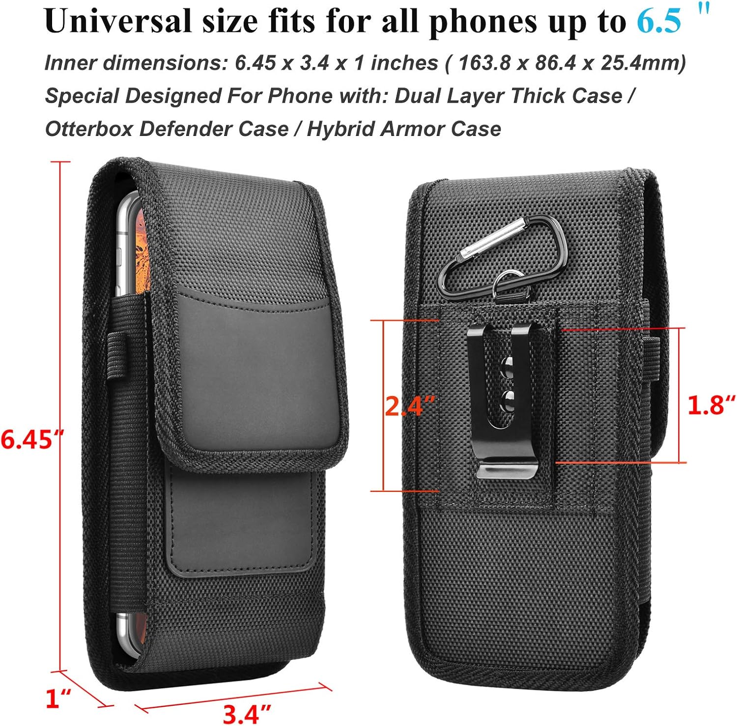- ✦Inner Dimensions: 6.45" X 3.4" X 1.0", Compatible with iPhone 16 Pro Max 16 Pro 16 Plus 16 15 Pro Max 15 Pro 15 Plus 15 14 Pro Max 14 Pro 14 Plus 14 13 Pro Max 13 Pro 13 Mini 12 Pro Max 12 Mini 11 Pro Max XS Max XR, Samsung Galaxy S25 Ultra S25 Plus S25 S24 Ultra S24 Plus S24 S23 Ultra S23 Plus S23 S22 Ultra S22 Plus S22 S21 Ultra S20 S10E S10 Plus S9 S8 S7 Note 20 Ultra Note 10 Note 9 Note 8 With Dual Layer Thick Case/Otterbox Defender Case/Hybrid Armor Case/Lifeproof Case/Battery Case on.