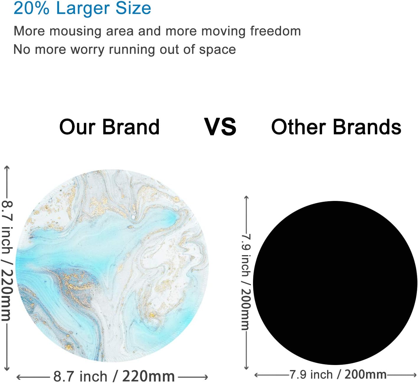 ITNRSIIET Round Mouse Pad with Stitched Edge Premium-Textured Waterproof Non-Slip Rubber Base Desktop Protection Mat Diameter 8.7 inches, Modern Marbling Light Blue