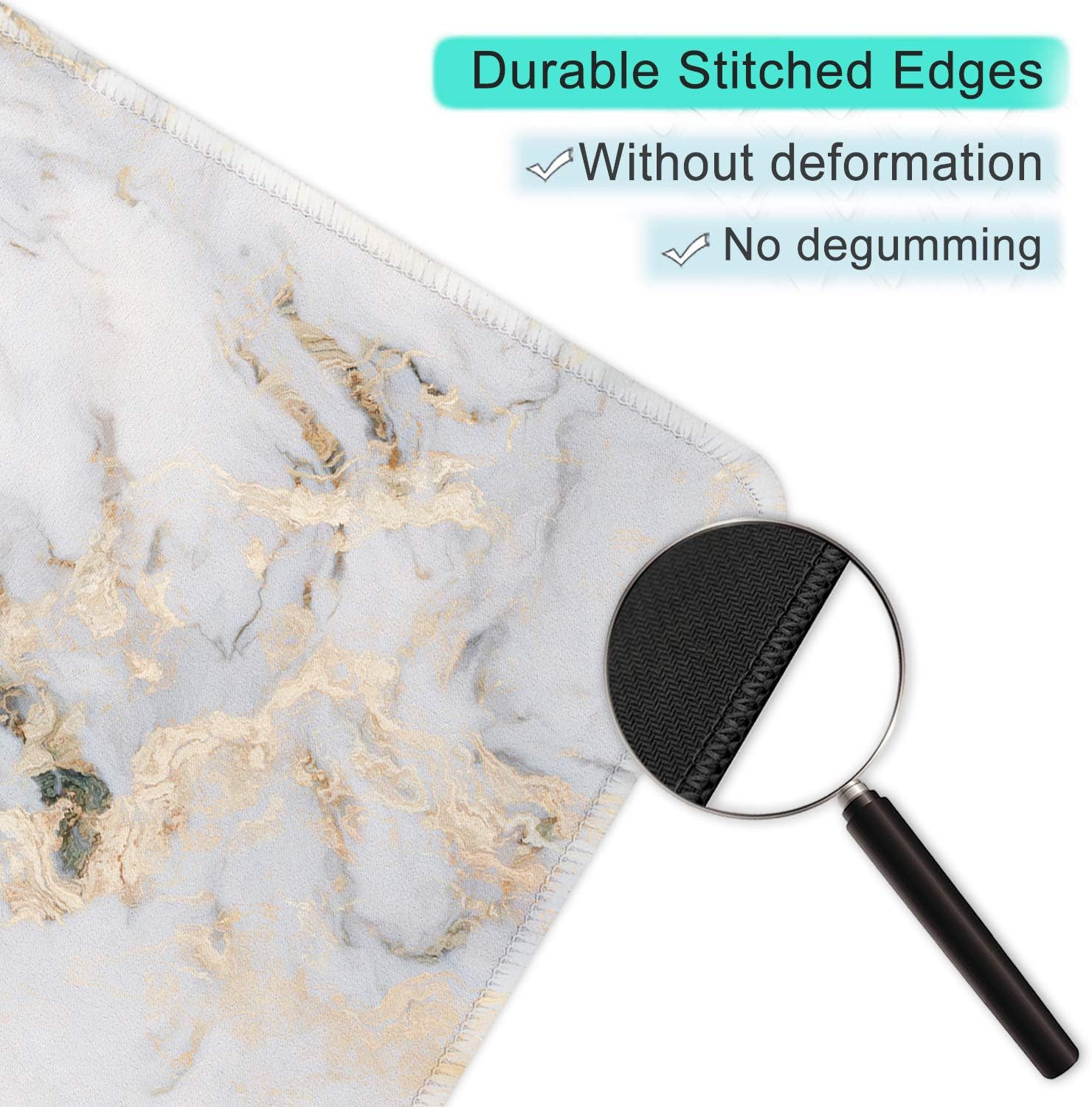 ITNRSIIET Mouse Pad with Stitched Edge Premium Textured Smooth Precise Operation Waterproof Washable Non-Slip Rubber Base Desktop Protection Mat, 10.2×8.3×0.12 inches, Gray Marbling Gold